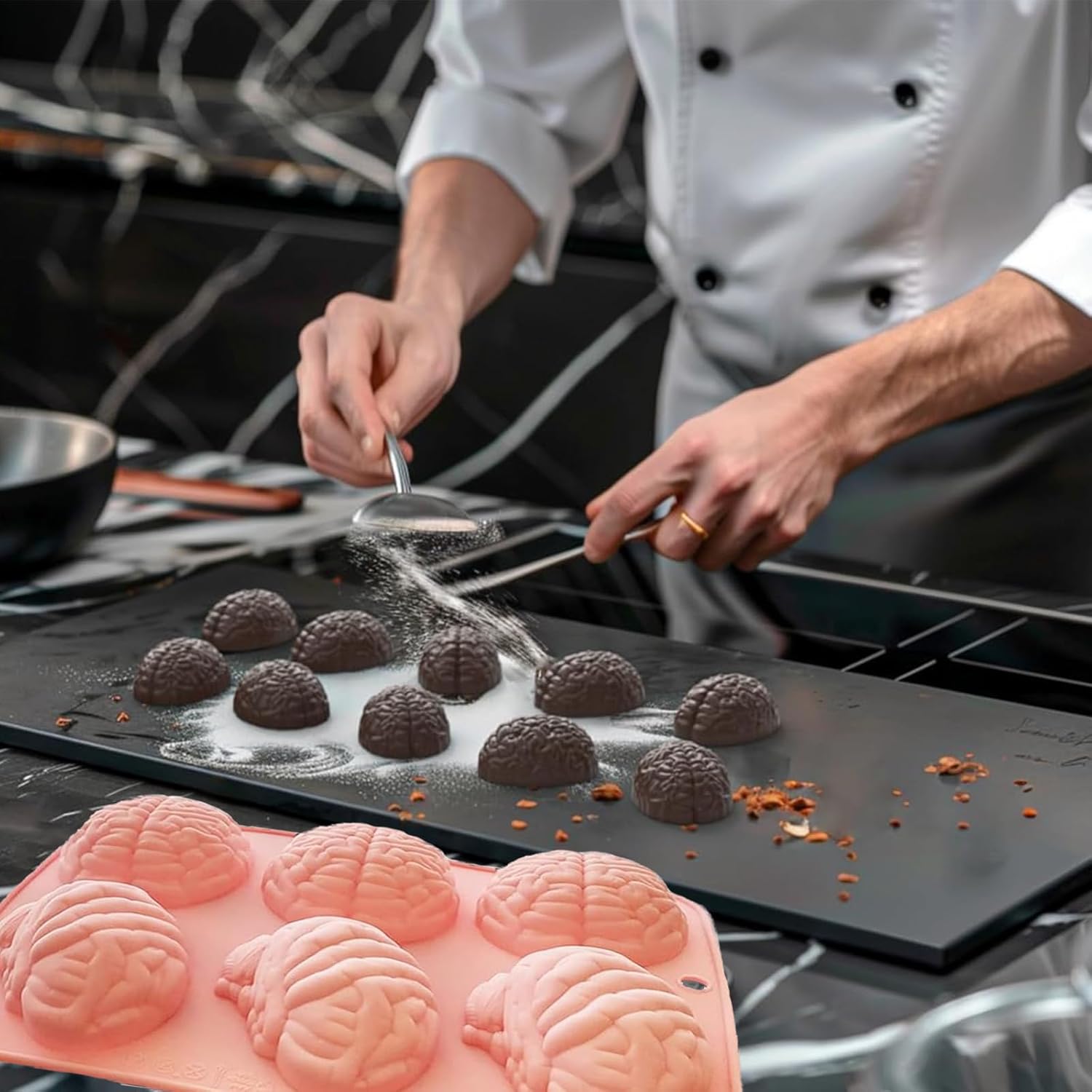 - 【PACKAGE INCLUDED】You will receive 2pcs Halloween silicone chocolate molds, each mold has 6 cavities including 3 brain molds,3 heart molds.12 cavities in total, perfectly meet your needs,these Halloween molds are perfect for making delicious Halloween candies,jello Cakes and chocolates.