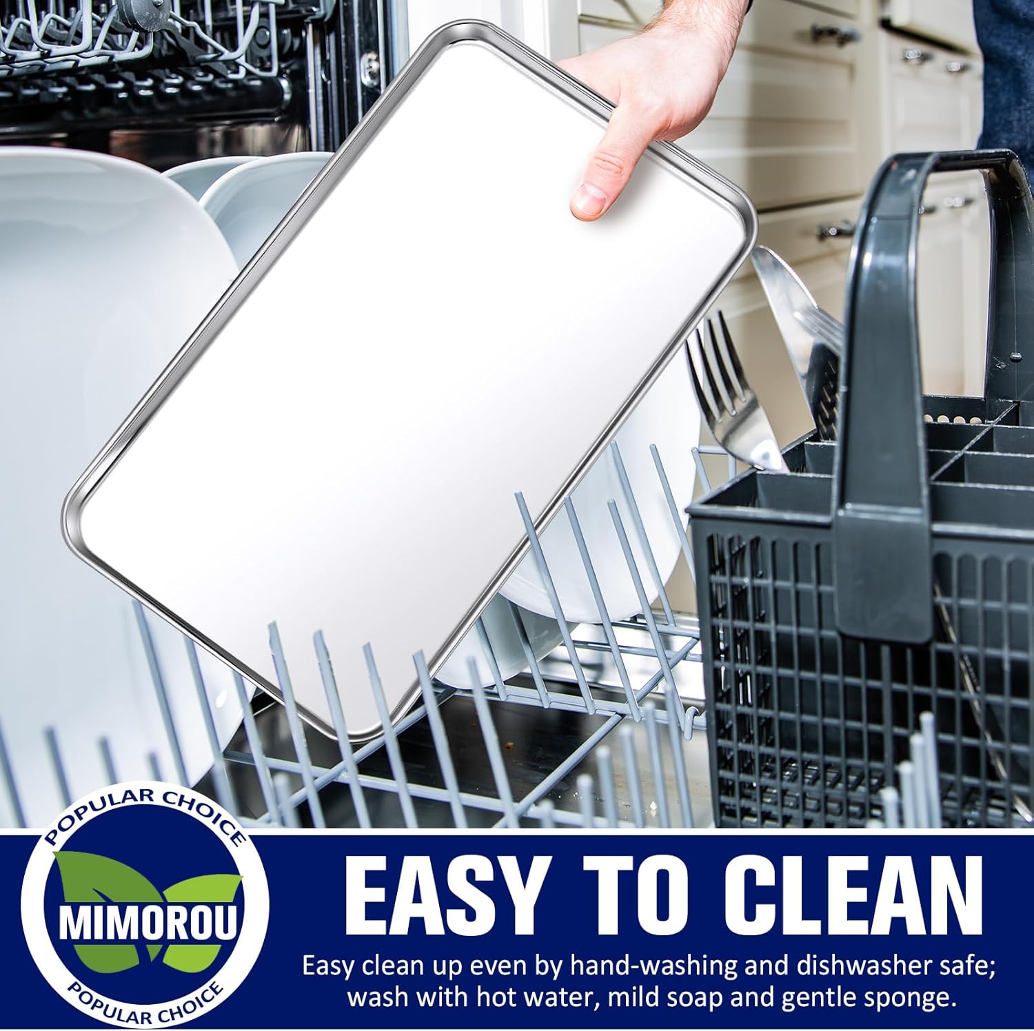 Mimorou 12 Pcs Baking Sheet Stainless Steel Cookie Small Metal Sheet Pans Professional Rectangle Oven Trays Kitchen Baking Cooking Oven and Toaster, Dishwasher Safe(10.2 x 5.9 Inch)