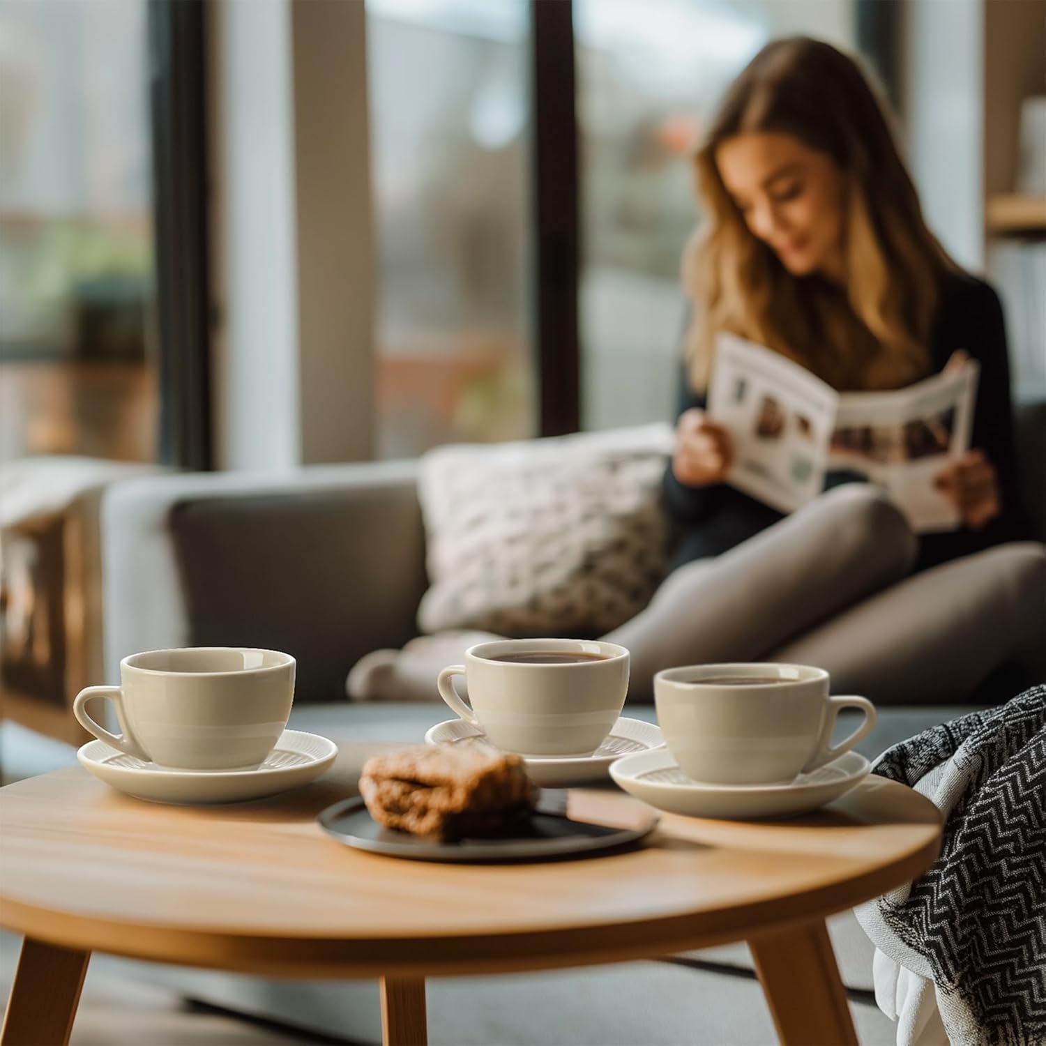 Sweese 6 Ounce Cappuccino Cups with Saucers, Porcelain Double Espresso Cups Set of 4 - Gray