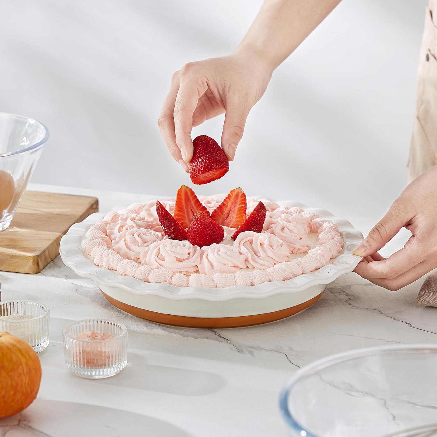 - 【Elegant and Functional Design】Featuring 24 pleated grooves for easy gripping and handling, this pie dish combines elegance with practicality. The modern farmhouse style and fluted edge not only add a touch of sophistication but also help shape your crusts beautifully.