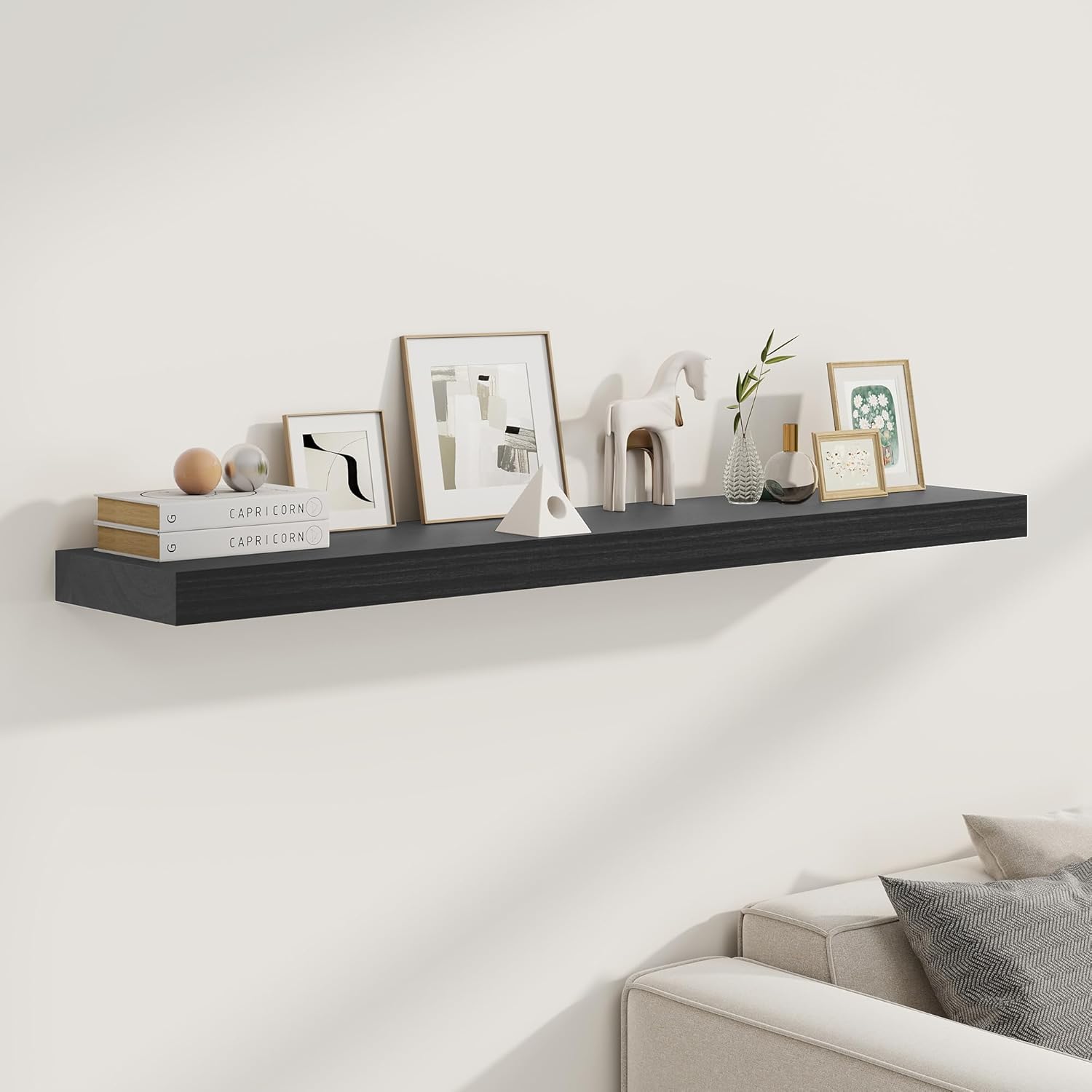 Fun Memories 48" Black Floating Shelves, 9.3 Inch Deep Floating Shelves for Wall, Rustic Wooden Wall Shelves for Home Decor, Large Fireplace Mantel for Storage, Deep Floating Shelf Set of 1