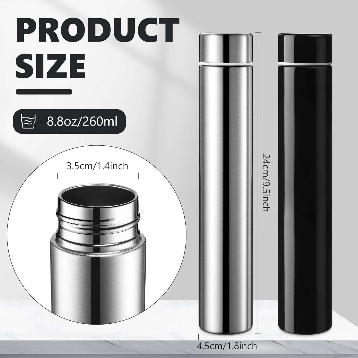 - What You Can Get: you will receive the slim water bottles measuring about 1.8 x 9.4 inches/ 4.5 x 24 cm in width and height, 8.8 oz/ 260 ml in capacity, enough to meet your daily use and replacement needs, and you can also share them with your family or friends; The small water bottle can be as gift for your family members, friends, and colleagues, tour pal, backpacker