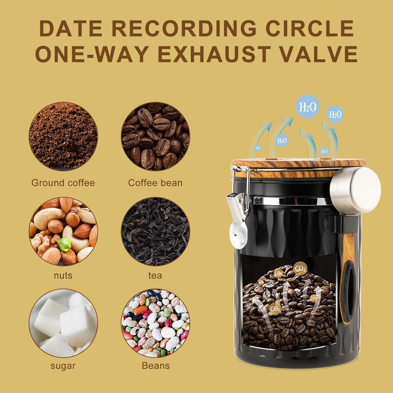 - 【Date Tracker & Free Scoop】: Ensure your coffee is always fresh and not expired. You can set the storage or expiry dates with the date tracker on the lid of your coffee storage canister. We also offer a free stainless steel coffee scoop, which can be attached to the hook!
