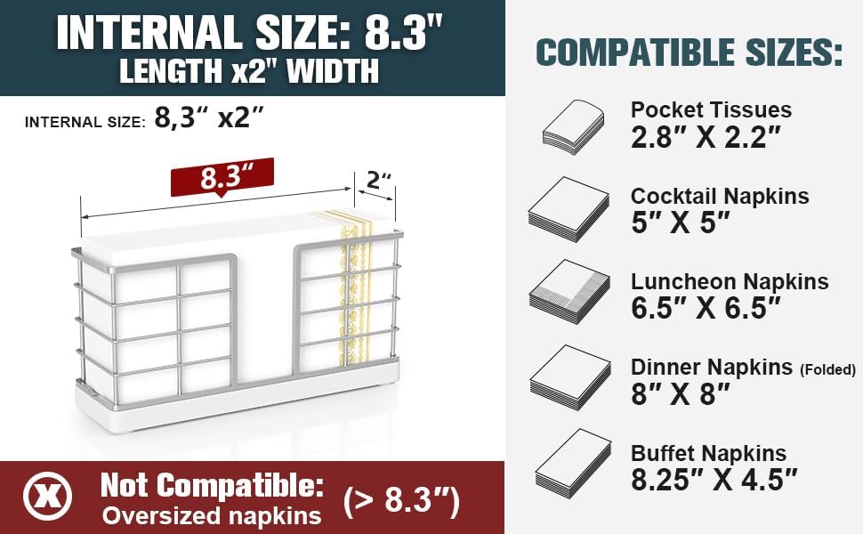 - Sized to Fit: The inner dimensions of the Bathroom Napkin Holder are 8.3" (length) x 2" (width), making it suitable for most standard guest towels and paper rolls. Napkins are stored vertically inside the holder, maximizing space and keeping them neat. It fits perfectly on the back of the toilet and is practical for year-round use