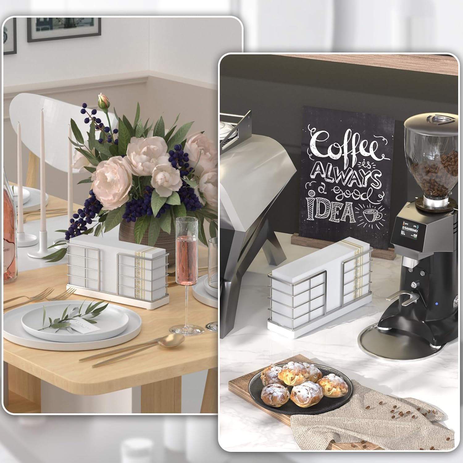 - Upright and Slim Style: Most paper napkin holders are flat, countertop types, which take up room. This takes up less space, so if you don't have much counter space, this is a perfect option