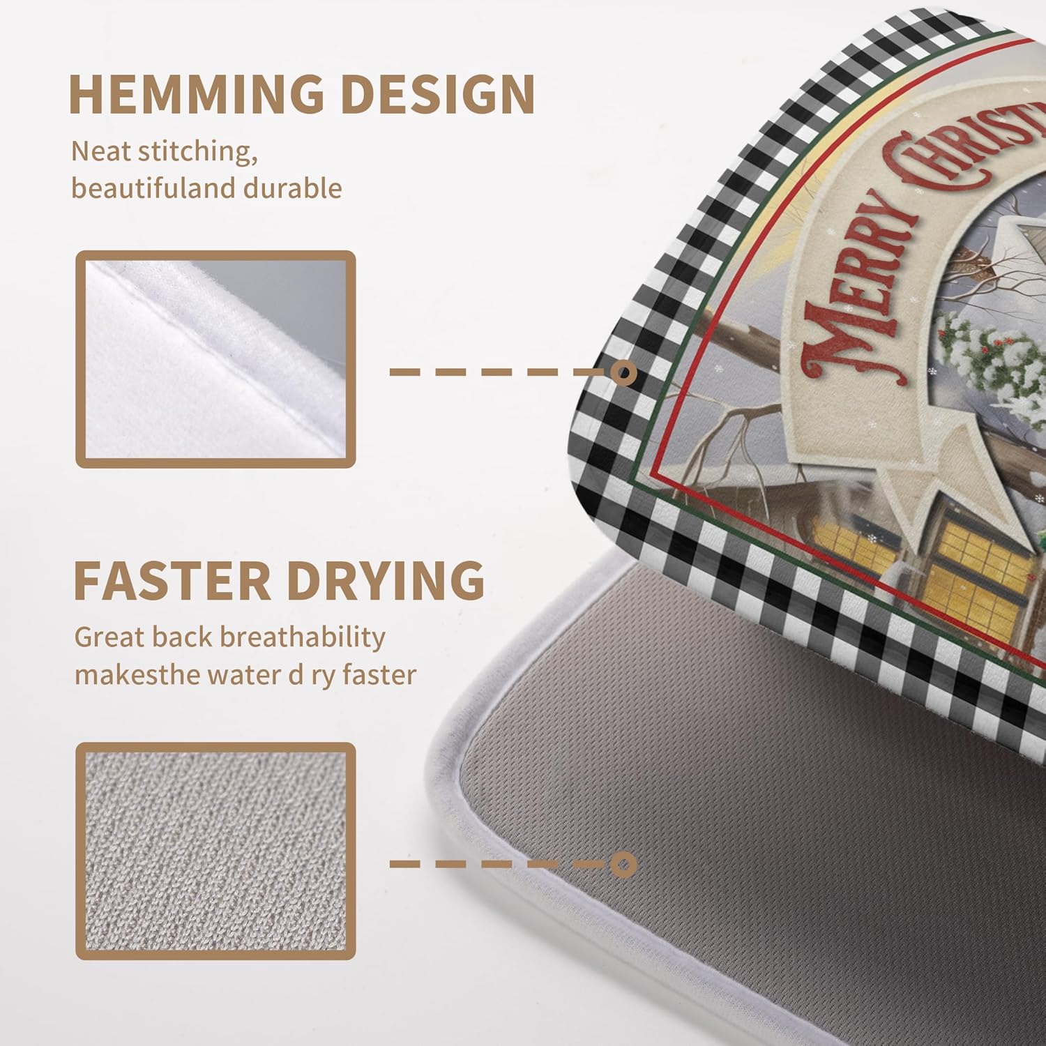 - [Easy to Clean]: This merry Christmas winter microfiber dish drying mat for dishes is hand or machine washable and non-bleachable - the absorbent microfiber construction has a flexible core that won't weaken in the wash.