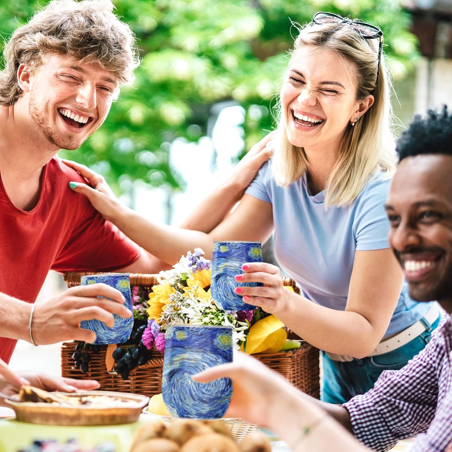 - STYLISH AND VERSATILE: The sleek, modern design of this water Tumbler makes it a fashionable accessory for any occasion. Whether you're hitting the gym, the office, school, or the trails, it's the perfect choice. Stunning rendering of van Gogh's famous oil painting, "Starry Night." The design is captured with an artist’s eye for detail, light, and color.