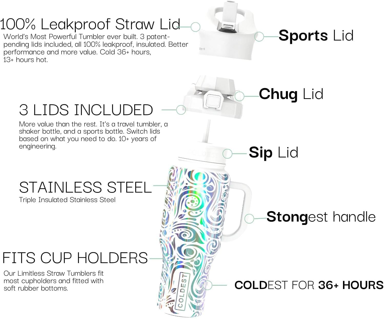 - 100% Leak-Proof, Guaranteed: No more worrying about spills- Coldest water bottle with handle is engineered for a completely leak-resistant experience. With three versatile lids, including a straw option, you can confidently take your drink anywhere without a single drop escaping.