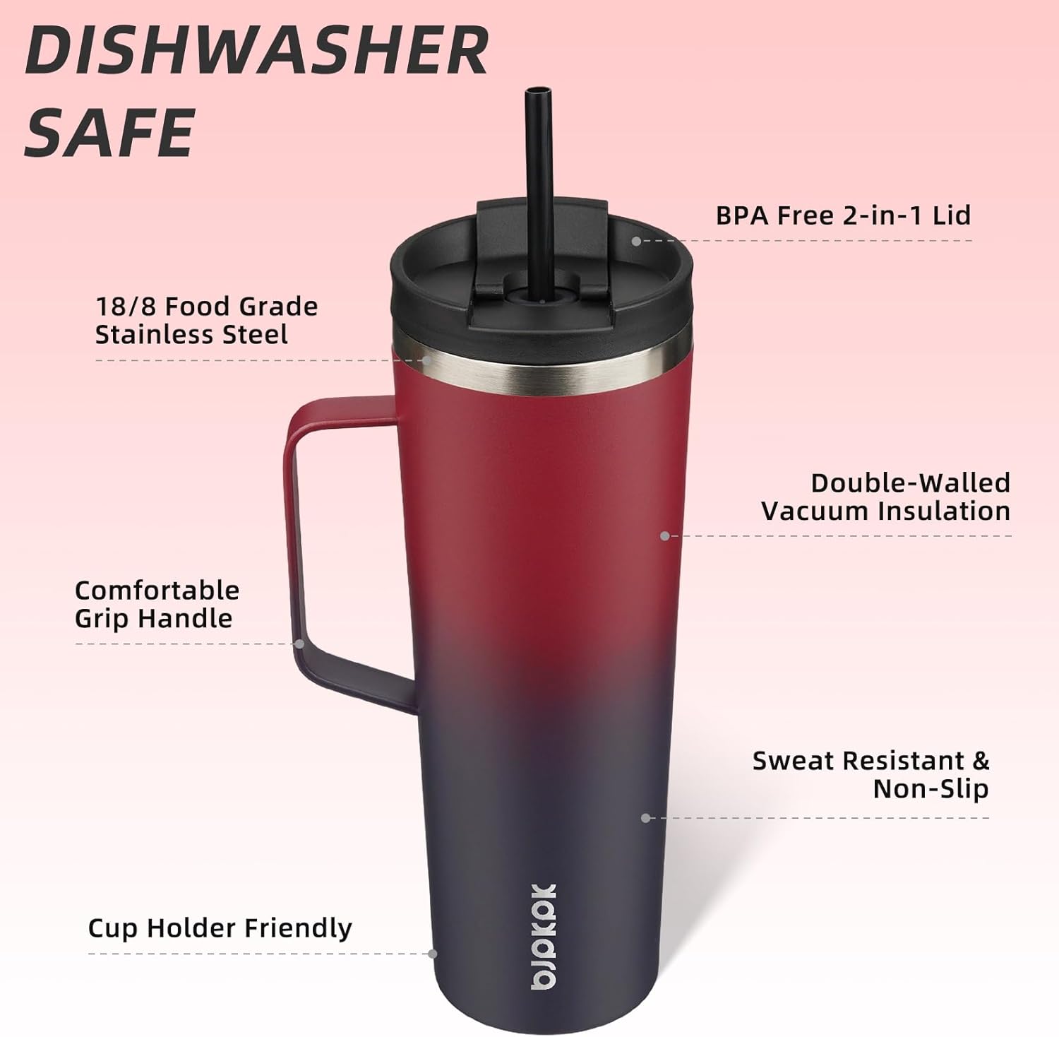 BJPKPK Insulated Tumbler with Handle, 30oz Insulated Tumblers with Lid and Straw, Stainless Steel Metal Water Bottles, Coffee Travel Mugs, Cups, Charming Red