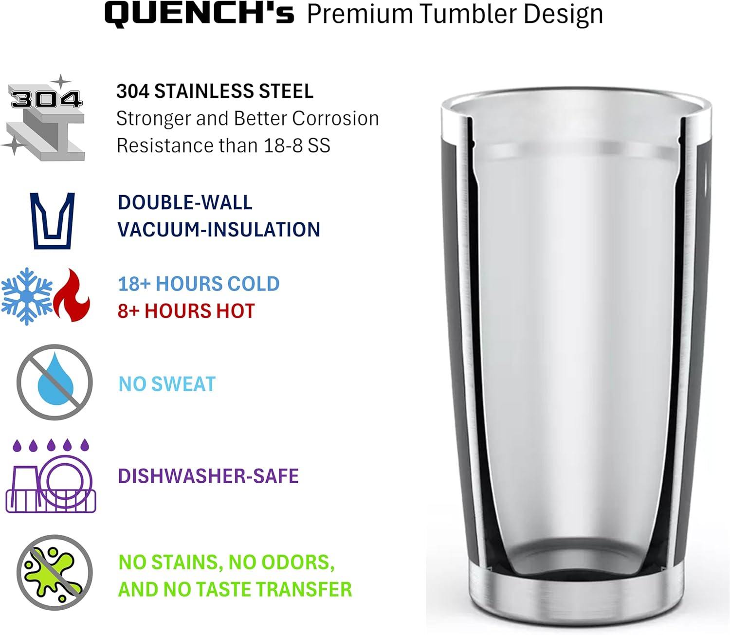 - VERSATILE AND STYLISH: It’s ideal for ice water, coffee, tea, smoothies, protein shakes, or any other beverage. So go ahead and QUENCH at home, on-the-go, at the gym, the office, the beach, and anywhere else life takes you.