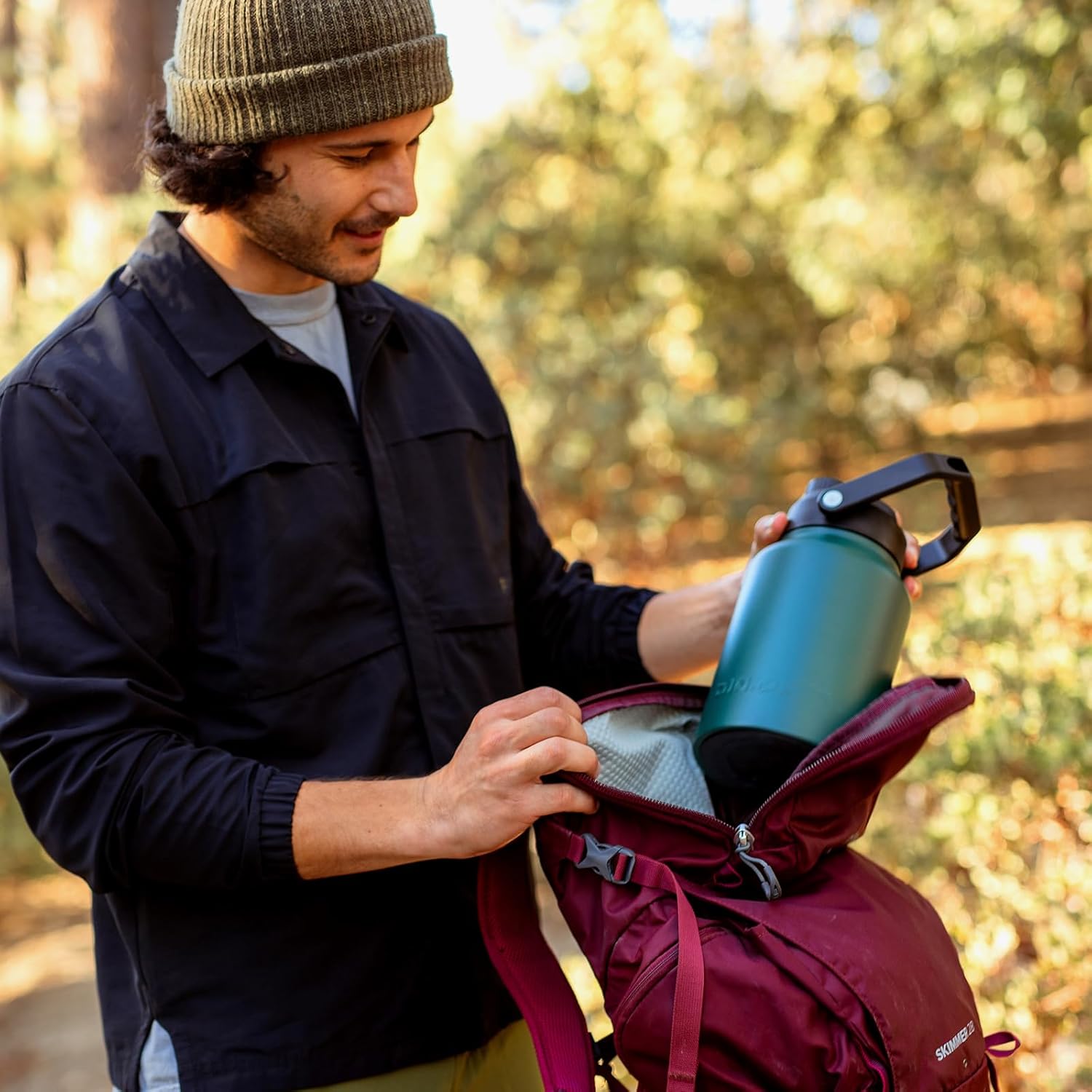 - LEAK PROOF & PORTABLE: With a leak-proof silicone loop inside the spout lid, it prevents splashing and dripping. Comes with a rubber pad to prevent wear on the bottom. Has a foldable carrying handle to enable you take it to anywhere.