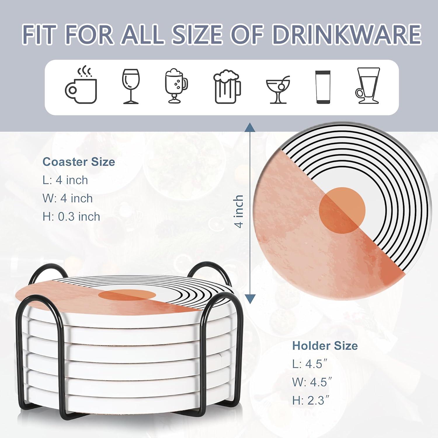 - Perfect Size For All Glasses: Measuring 4 Inches In Diameter, These Coasters Fit All Glasses, Mugs, And Teacups, Ensuring Your Furniture Is Protected In Style.