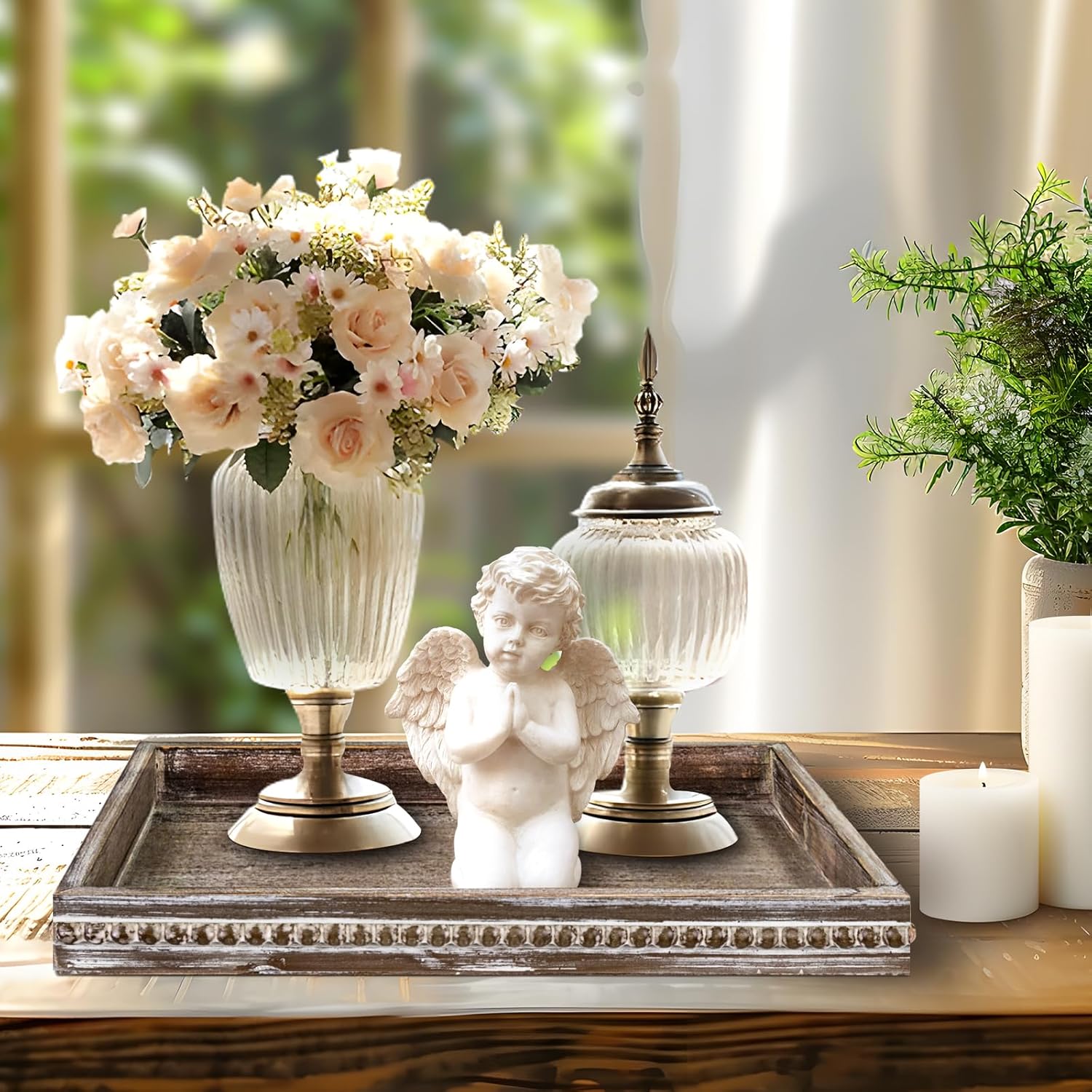 - [Beautiful Decoration]: If you want to dress up your dining room, this versatile wooden tray must be the best choice for your table centerpiece, add your favorite mini decorative items, you can get a stunning centerpiece tray display!