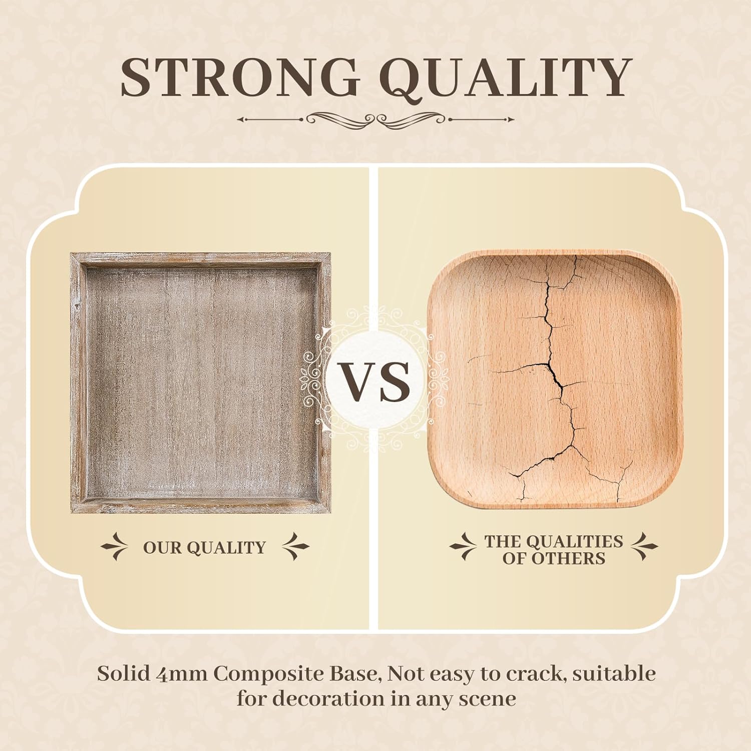 - [Carefully Designed]: He's not an oversized tray just larger than the regular siz, Each farmhouse decorative tray is handmade by skilled craftsmen. Designed to be 1” larger than the usual regular sized trays of 13" x 13" x 1.6" wooden tray is not only more practical but also beautiful to decorate, adding a unique and elegant touch to your home.