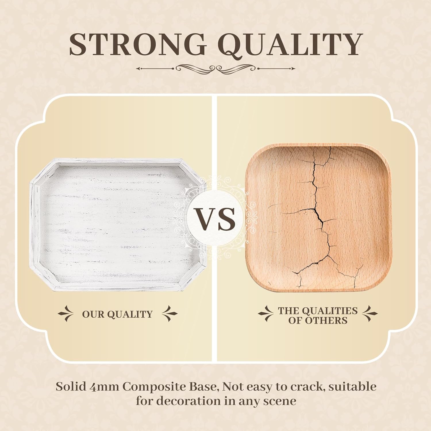 - [Vintage wooden tray]: The wooden tray has a unique design, and the tray is surrounded by resin beads, which is more textured than plastic beads. The surface is polished to retain the wood grain, and matched with retro white color, it has a natural and vintage feel. Whether it is to greet friends or relatives, this wooden tray can show your elegant taste and bring a warm and fashionable atmosphere to the home environment.