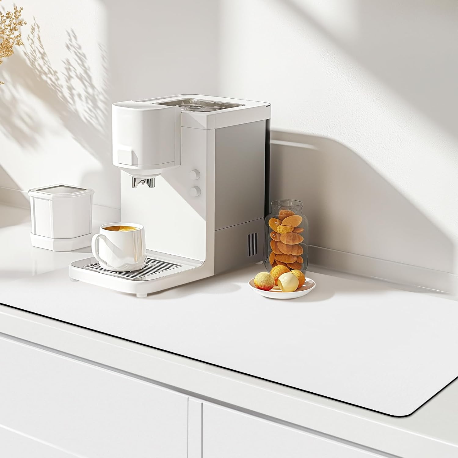 Matace Designer Coffee Bar Mat, Extra Large 17 x 31.5 Inches, Rubber Backing, Absorbent Coffee Maker Mats for Dish Drying, Kitchen Countertop, Heat Resistant, Solid White