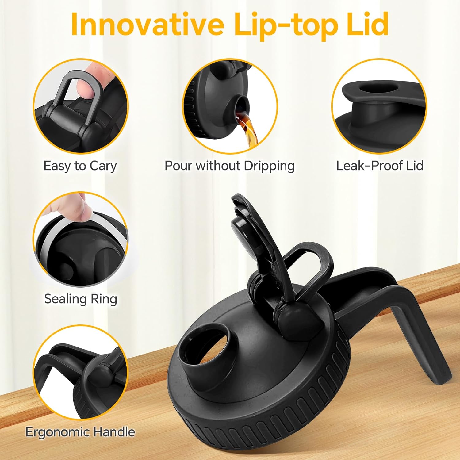 Mason Jar Pitcher, 64 OZ Glass Pitcher with Lid Double Leak-proof with Handle Water Jug Wide Mouth Breast Milk Pitcher Fridge Container for Water, Juice, Iced Coffee, Tea, Juice (Black)