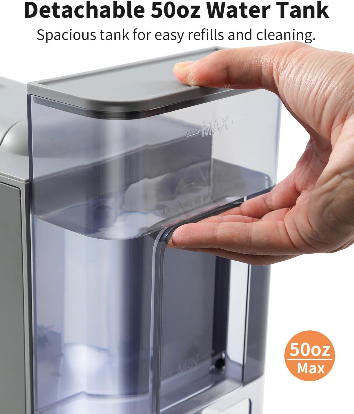 - 【50 OZ REMOVABLE RESERVOIR】Large water tank enables brewing multiple cups at once, eliminating the need for frequent refills.