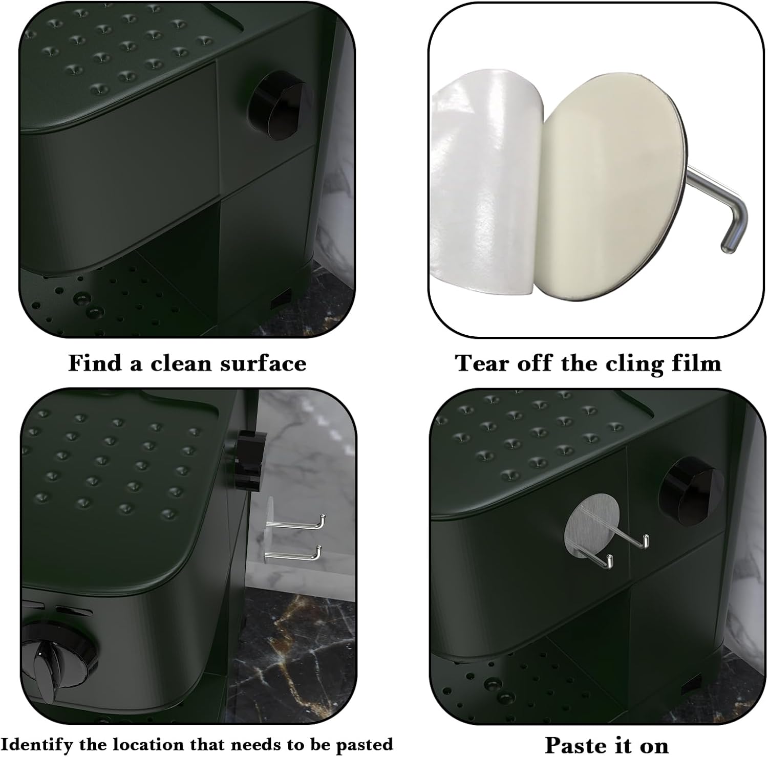 - Self adhesive coffee handle storage is no drilling, saving counter space and keeping countertops clean.