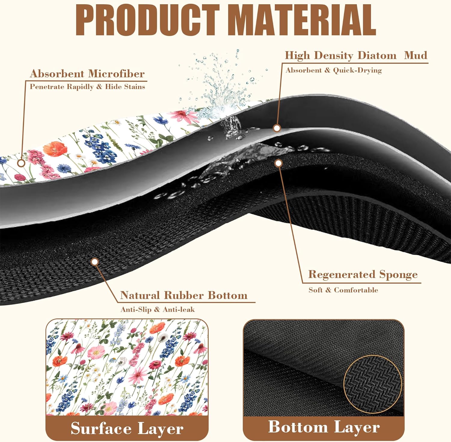 - 【Absorbent & Quick-Drying】The surface of this coffee mat is made of absorbent microfiber and the middle is made of composite sponge, which can absorb up to 4 times its weight in water and has a strong water absorption capacity. The high-density design makes it fast drying and can quickly absorb spilled liquids to keep your counter or desktop dry