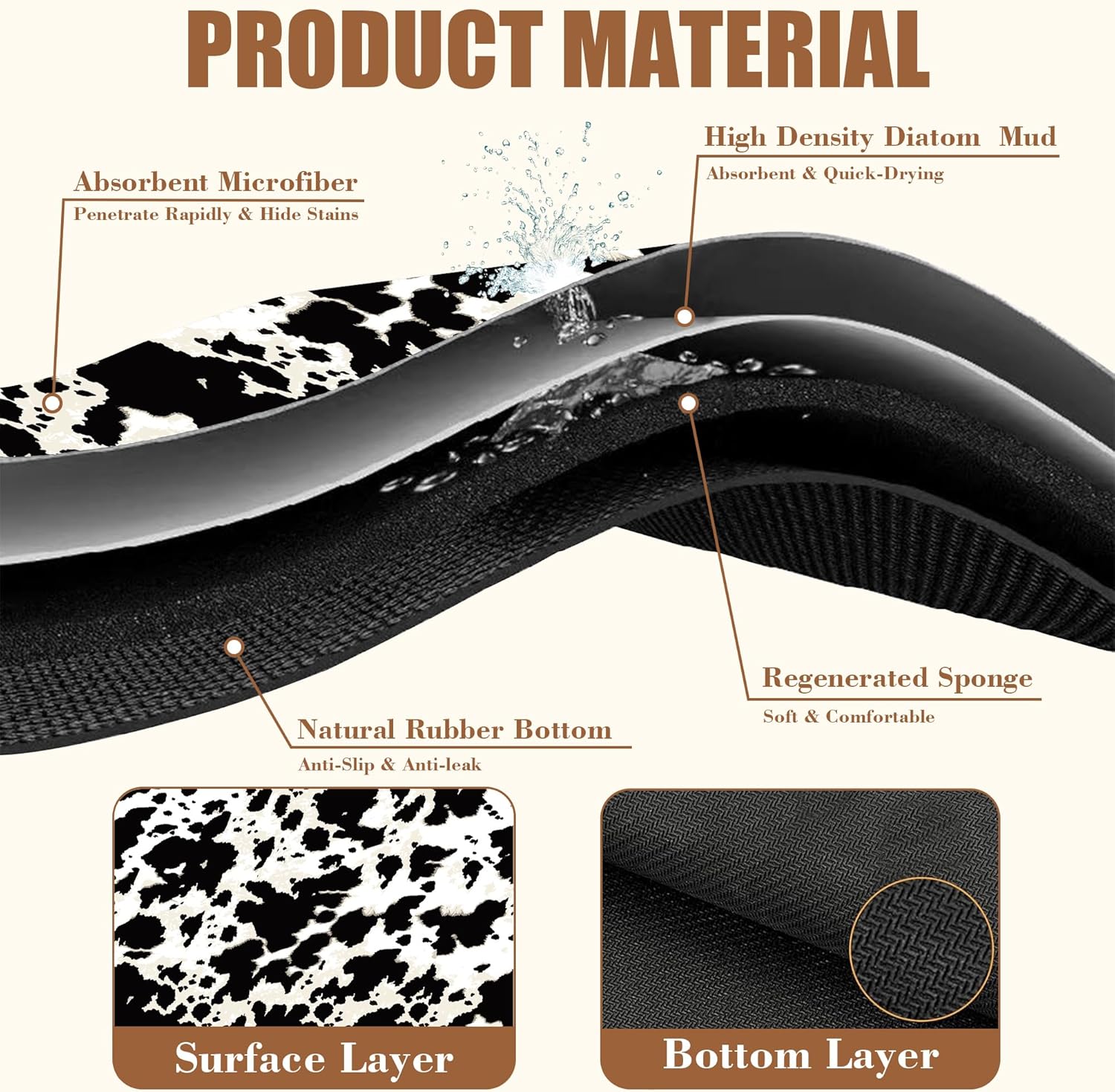 Dish Drying Mat Cow Print Coffee Bar Mat for Countertop Absorbent Hide Stain Rubber Backed Dish Drainer Rack Pad Espresso Machine Dining Room Decoration 11.8 x 19.7 Inch