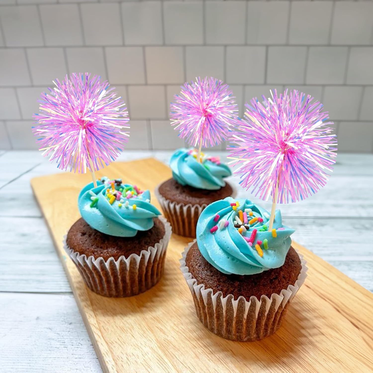 - 【NO Required】: 30Pcs Foil Firework cupcake toppers can put in the cake directly! These 30Pcs Foil Firework Cupcake toppers save your time and super easy to use. You can easily dress up your birthday theme cakes, yes! but don't stop there, put them into desserts, cookies, fruit pieces, appetizers, muffins and so much more!