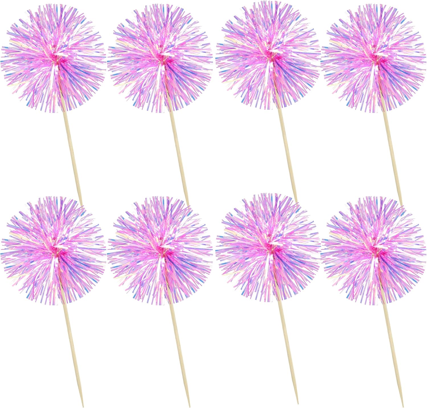 Ephlyn 30Pcs Foil Firework Cupcake Toppers Party Birthday Cake Toppers Supplies Sparkle Tinsel Cocktail Fruit Toothpick for Birthday Wedding Graduation Party Rose Red