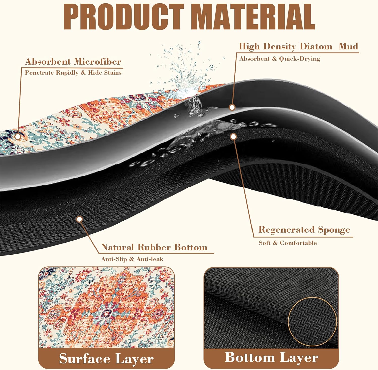 - 【Absorbent & Quick-Drying】The surface of this coffee mat is made of absorbent microfiber and the middle is made of composite sponge, which can absorb up to 4 times its weight in water and has a strong water absorption capacity. The high-density design makes it fast drying and can quickly absorb spilled liquids to keep your counter or desktop dry
