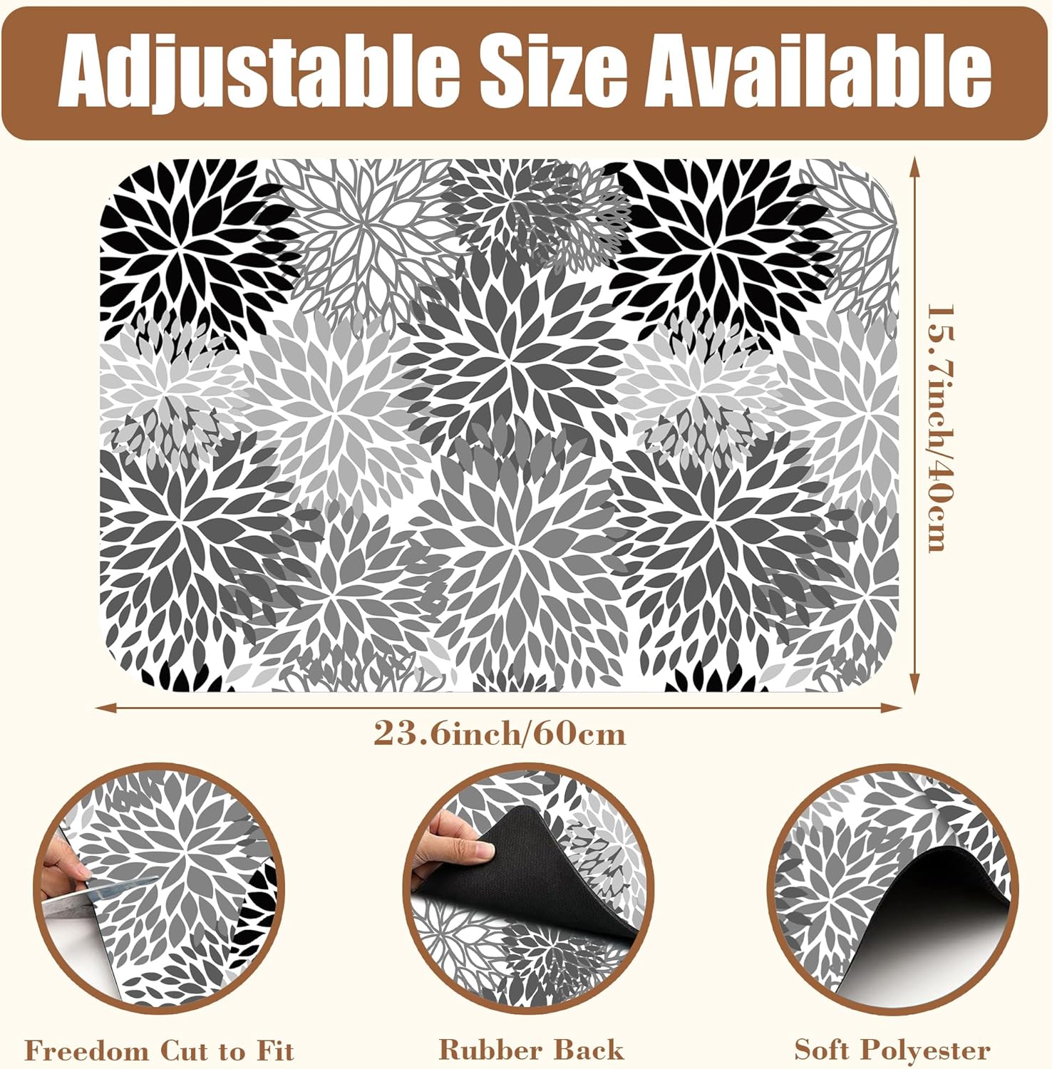 Dish Drying Mat Black and White Chrysanthemum Flower Coffee Bar Absorbent Rubber Backed Hide Stain Dish Drainer Rack Coffee Maker Pot Dining Room Decoration 15.7 x 23.6 Inch