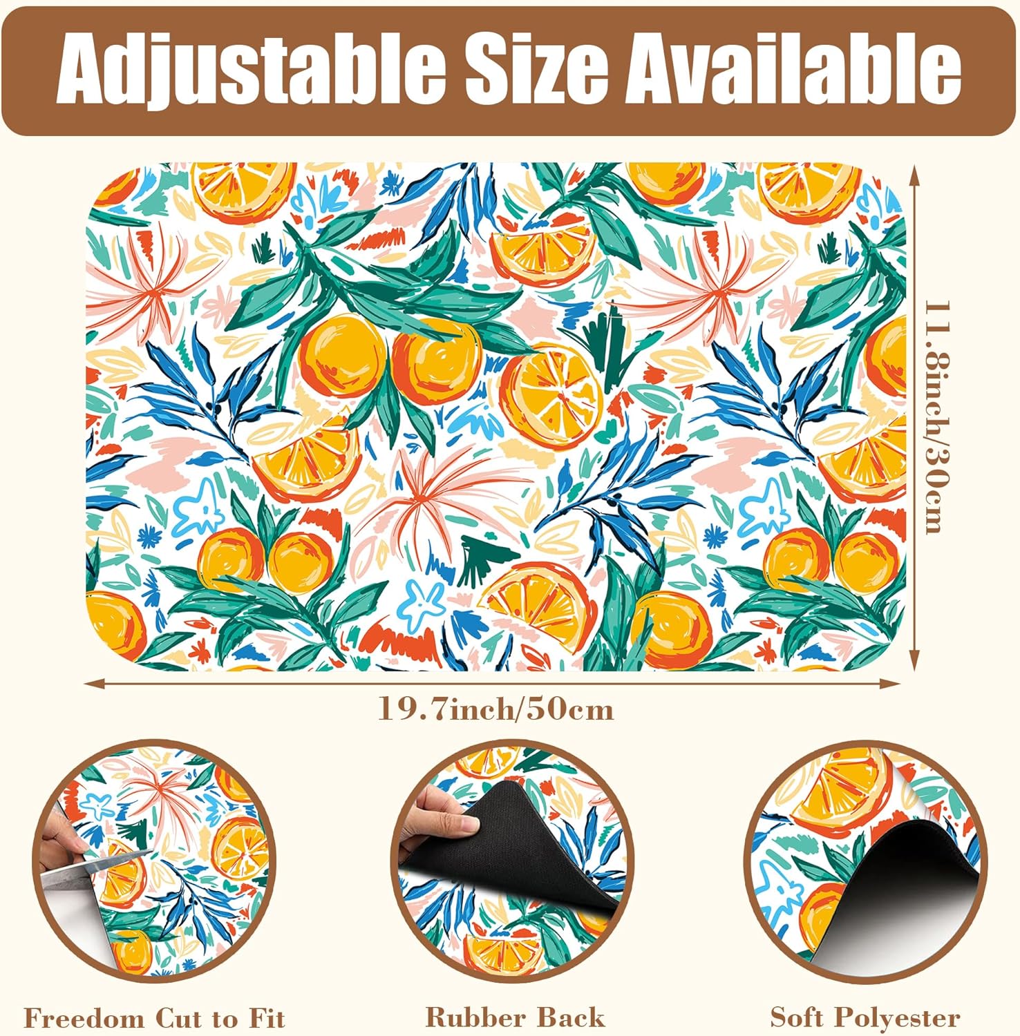 Dish Drying Mat Fruit Orange and Leaves Coffee Bar Mat for Countertop Absorbent Coffee Mat Rubber Backed Hide Stain Dish Drainer Rack Mat Coffee Maker Coffee Pot Dining Room Decor 11.8 x 19.7 Inch