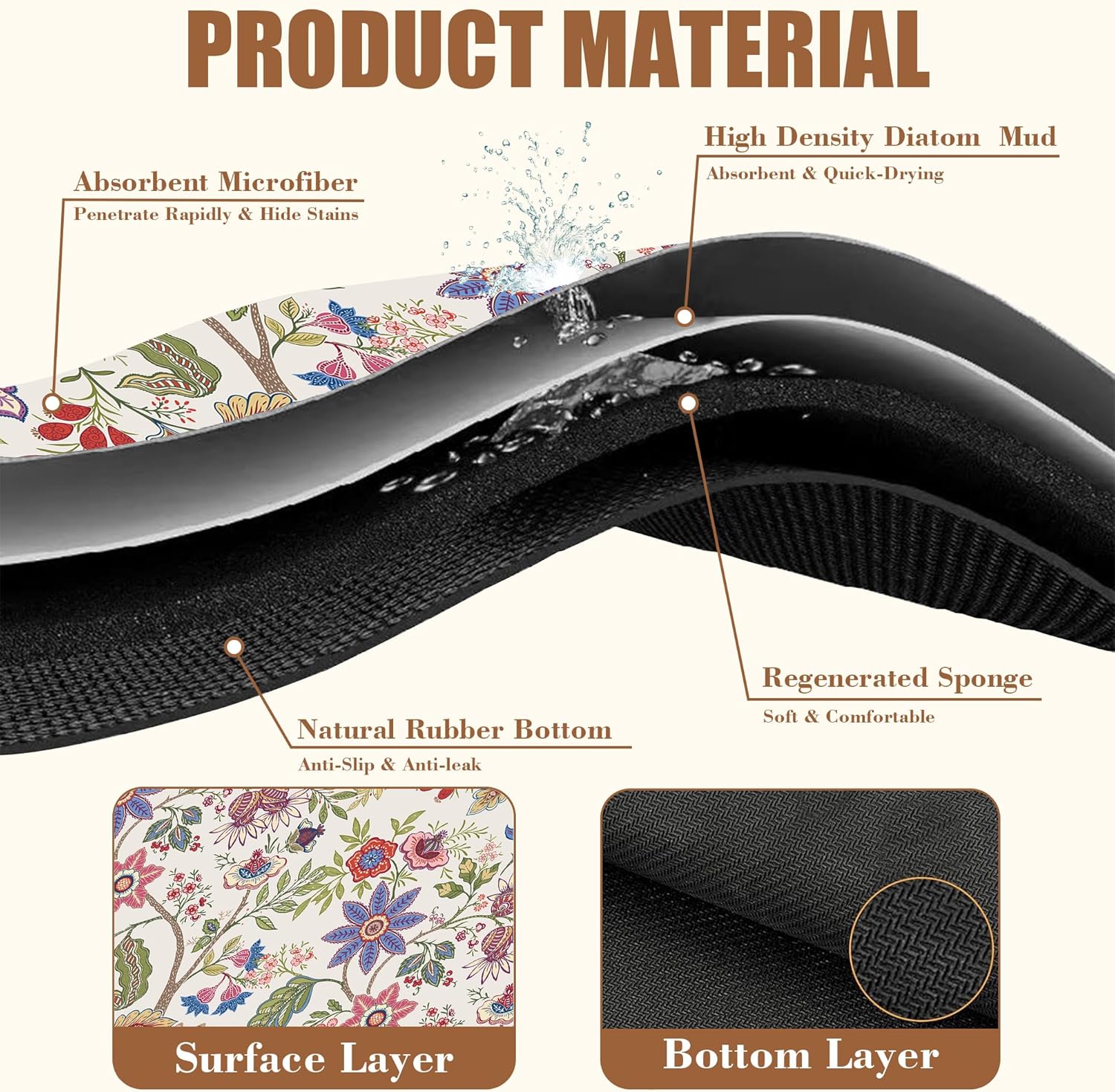 Colorful Flowers Dish Drying Mat for Kitchen Counter Bar Mat Hide Stain Absorbent Rubber Backed Coffee Maker Espresso Machine Bar Accessories 11.8 x 19.7 Inch