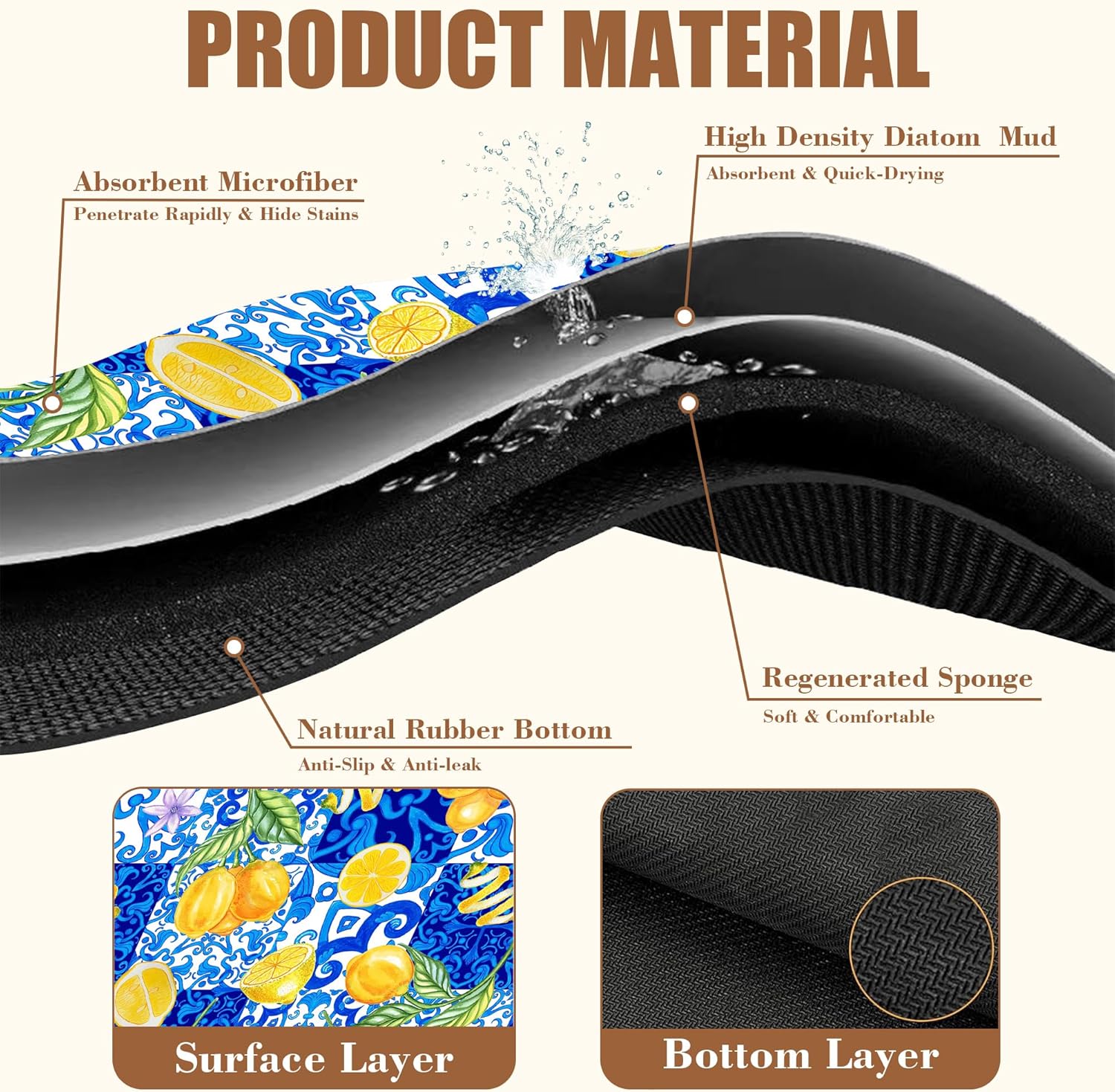 Lemon and Blue Tile Dish Drying Mat for Kitchen Counter Coffee Bar Mat Hide Stain Absorbent Rubber Backed Drying Rack Pad Espresso Machine Coffee Bar Accessories 11.8 x 19.7 Inch