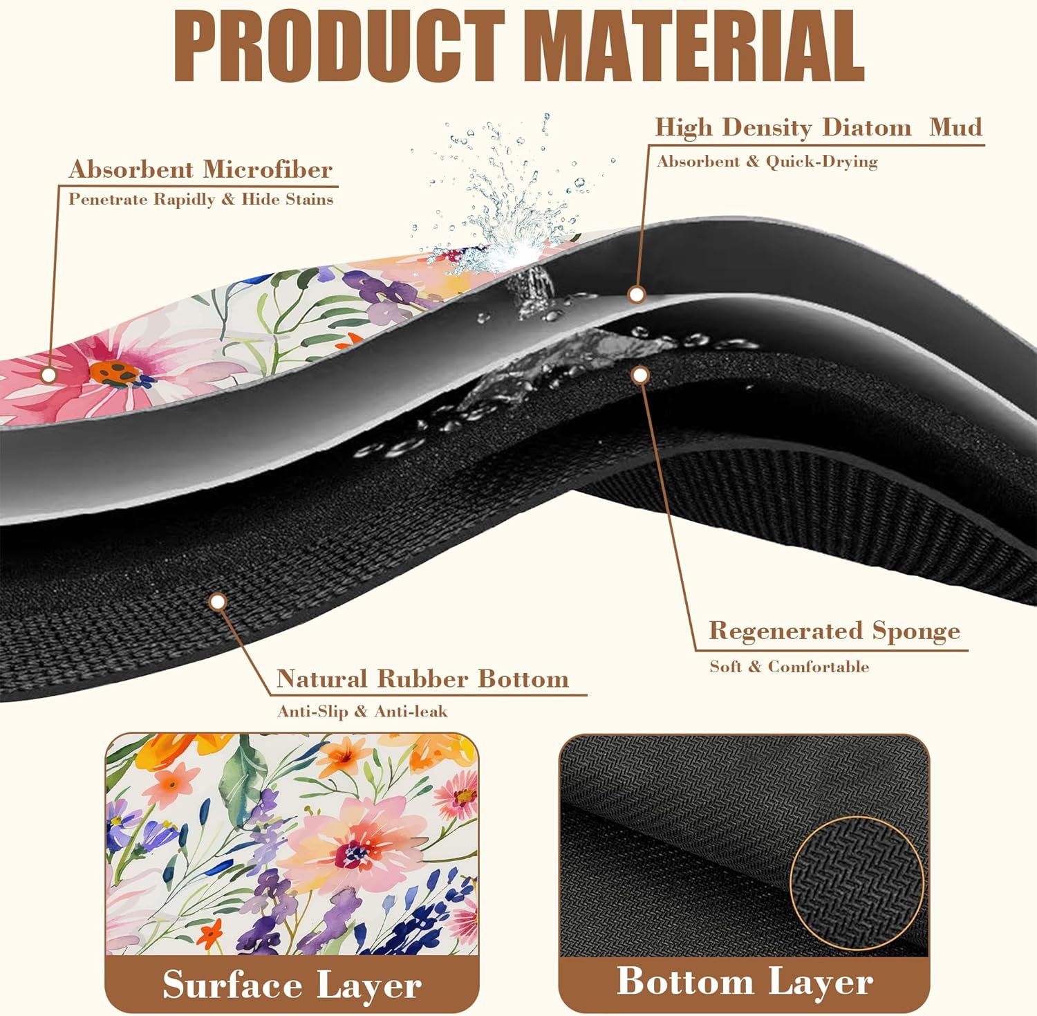 Dish Drying Mat Colorful Wildflowers Coffee Bar Mat for Countertop Absorbent Rubber Backed Hide Stain Dish Drainer Rack Pad Espresso Machine Cafe Table Dining Room Decoration 11.8 x 19.7 Inch