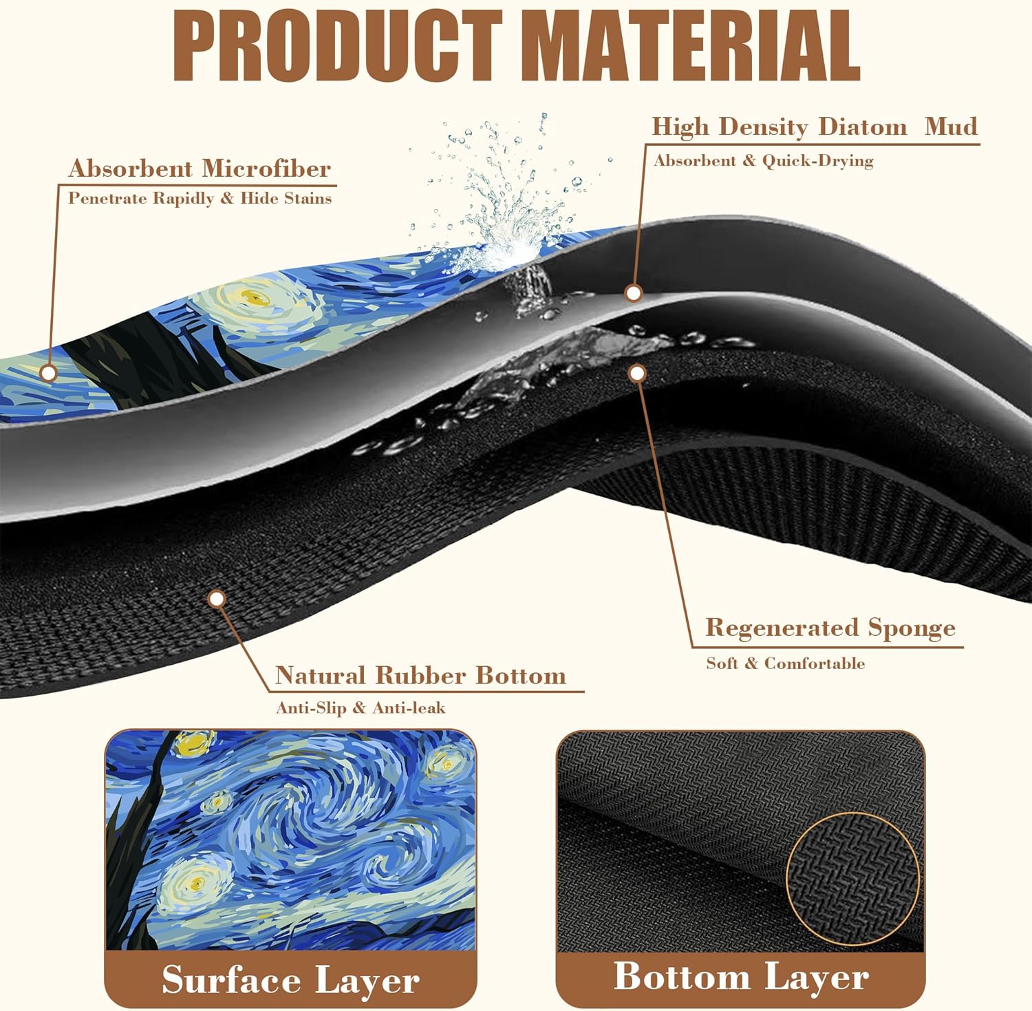 - 【Absorbent & Quick-Drying】The surface of this coffee mat is made of absorbent microfiber and the middle is made of composite sponge, which can absorb up to 4 times its weight in water and has a strong water absorption capacity. The high-density design makes it fast drying and can quickly absorb spilled liquids to keep your counter or desktop dry