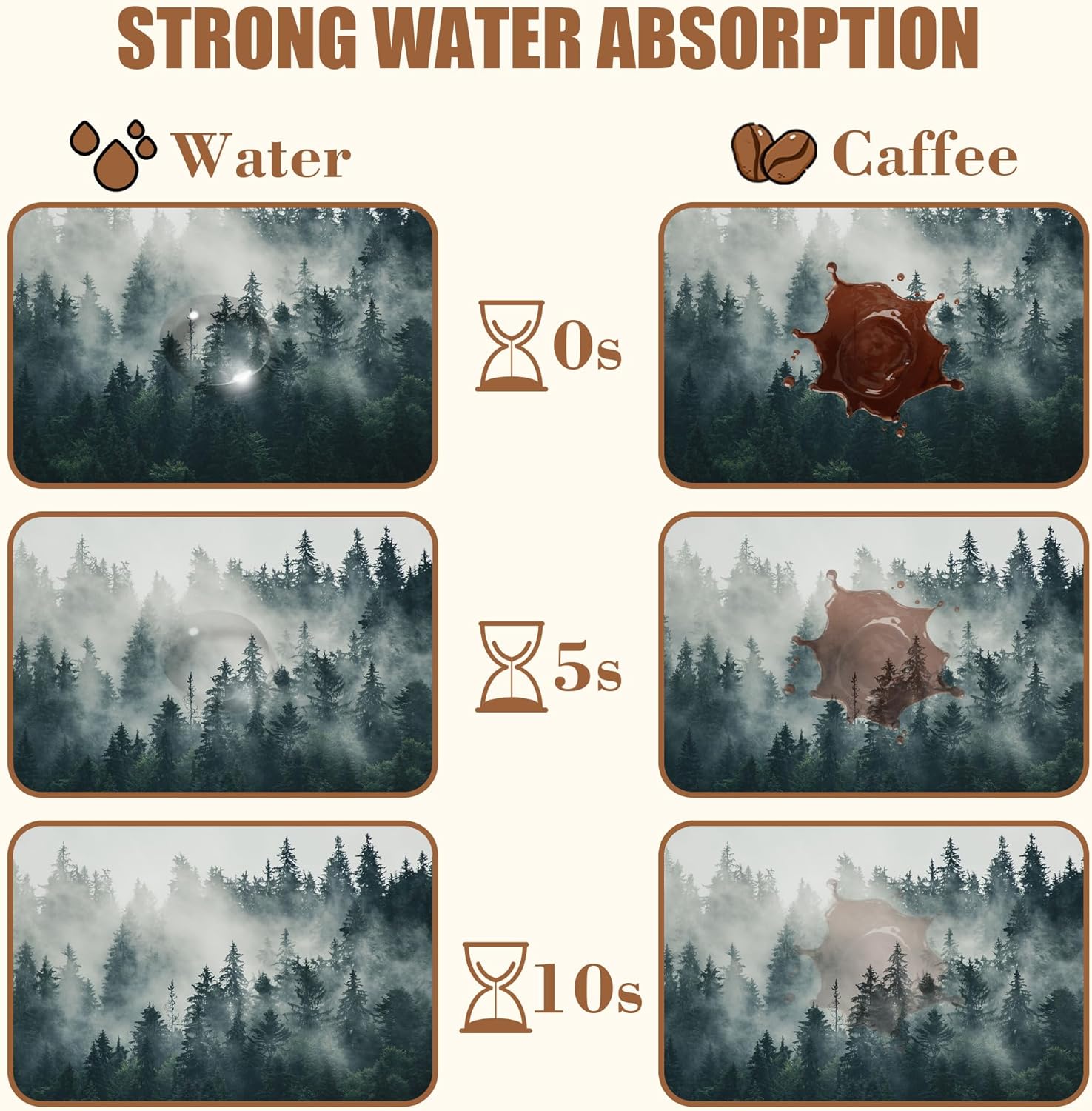 - 【Absorbent & Quick-Drying】The surface of this coffee mat is made of absorbent microfiber and the middle is made of composite sponge, which can absorb up to 4 times its weight in water and has a strong water absorption capacity. The high-density design makes it fast drying and can quickly absorb spilled liquids to keep your counter or desktop dry