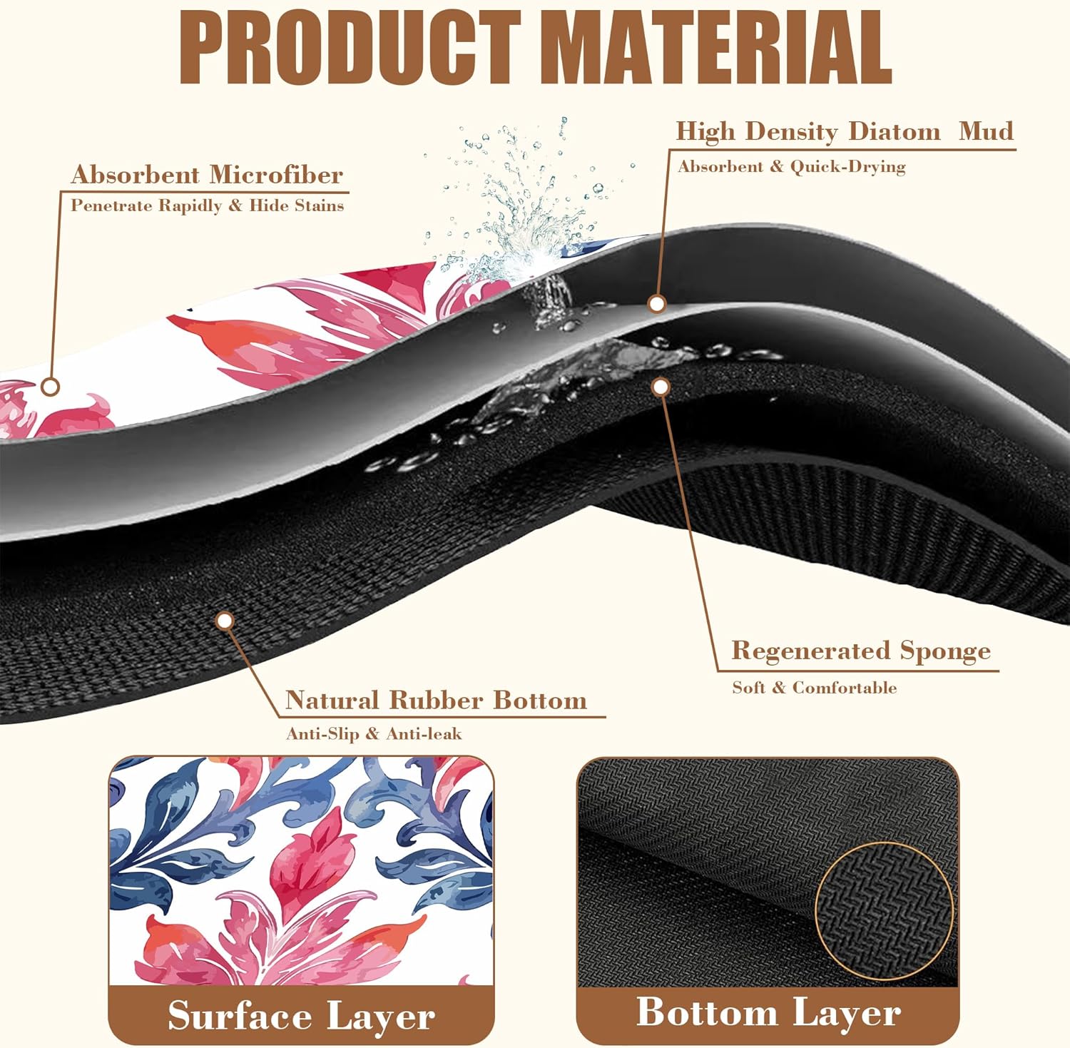 - 【Absorbent & Quick-Drying】The surface of this coffee mat is made of absorbent microfiber and the middle is made of composite sponge, which can absorb up to 4 times its weight in water and has a strong water absorption capacity. The high-density design makes it fast drying and can quickly absorb spilled liquids to keep your counter or desktop dry