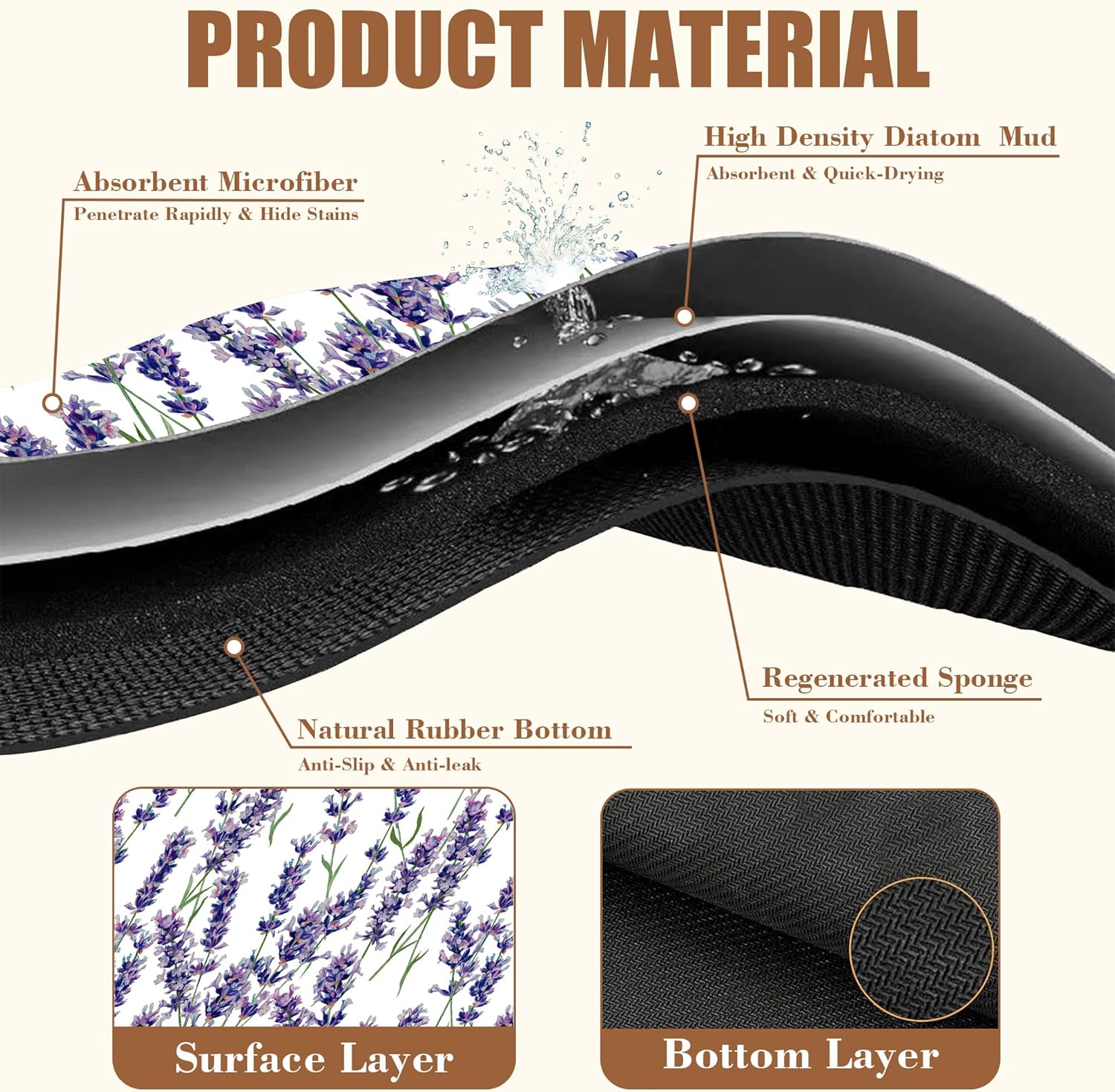 Dish Drying Mat Lavender Flowers Coffee Bar Mat for Countertop Absorbent Rubber Backed Hide Stain Dish Drainer Rack Pad Coffee Maker Espresso Machine Dining Room Decoration 15.7 x 23.6 Inch