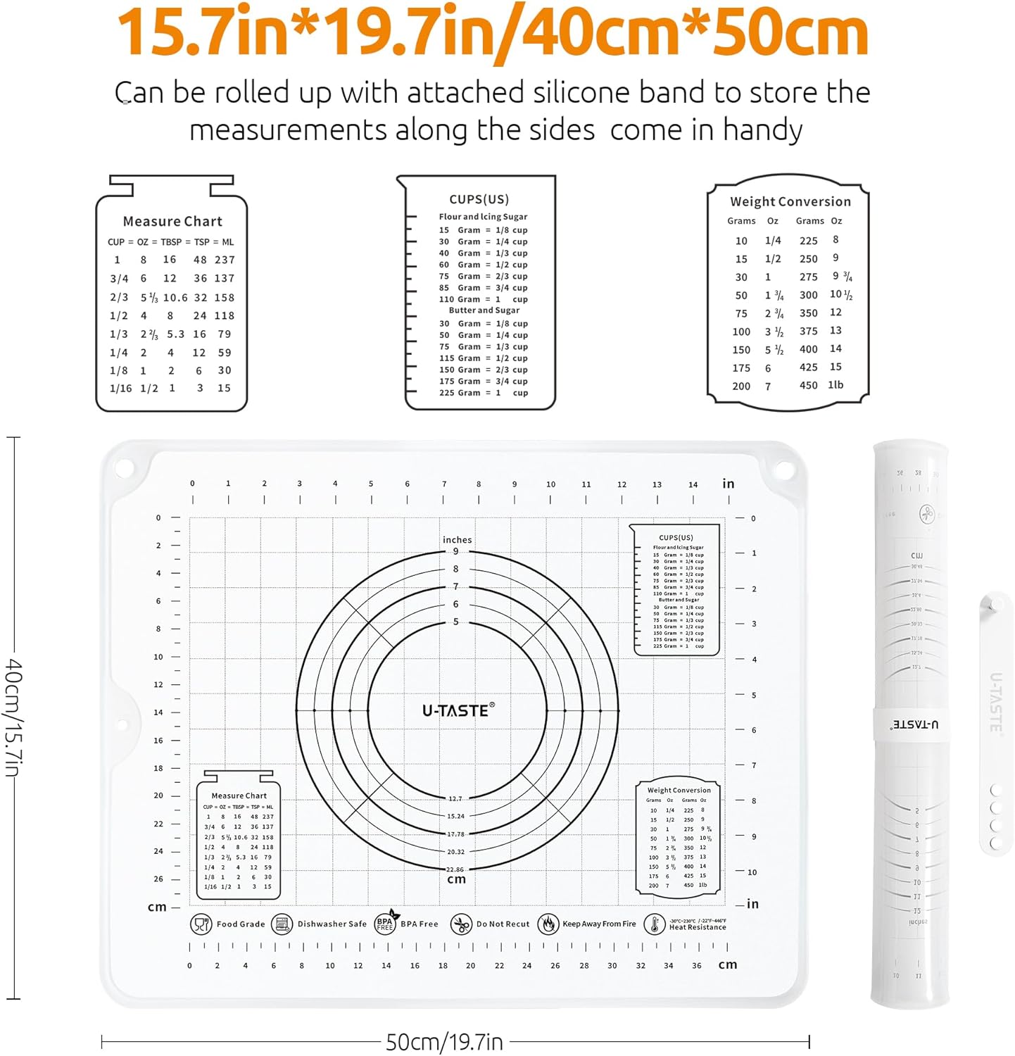 U-Taste Liquid Silicone Pastry Mat: 16"x20" Food-Grade Non-Stick Dough Rolling Baking Sheet, Non Slip for Kneading Prep Pizza, Fondant, Pie Crust with Clear Measurement and Raised Edges (Transparent)