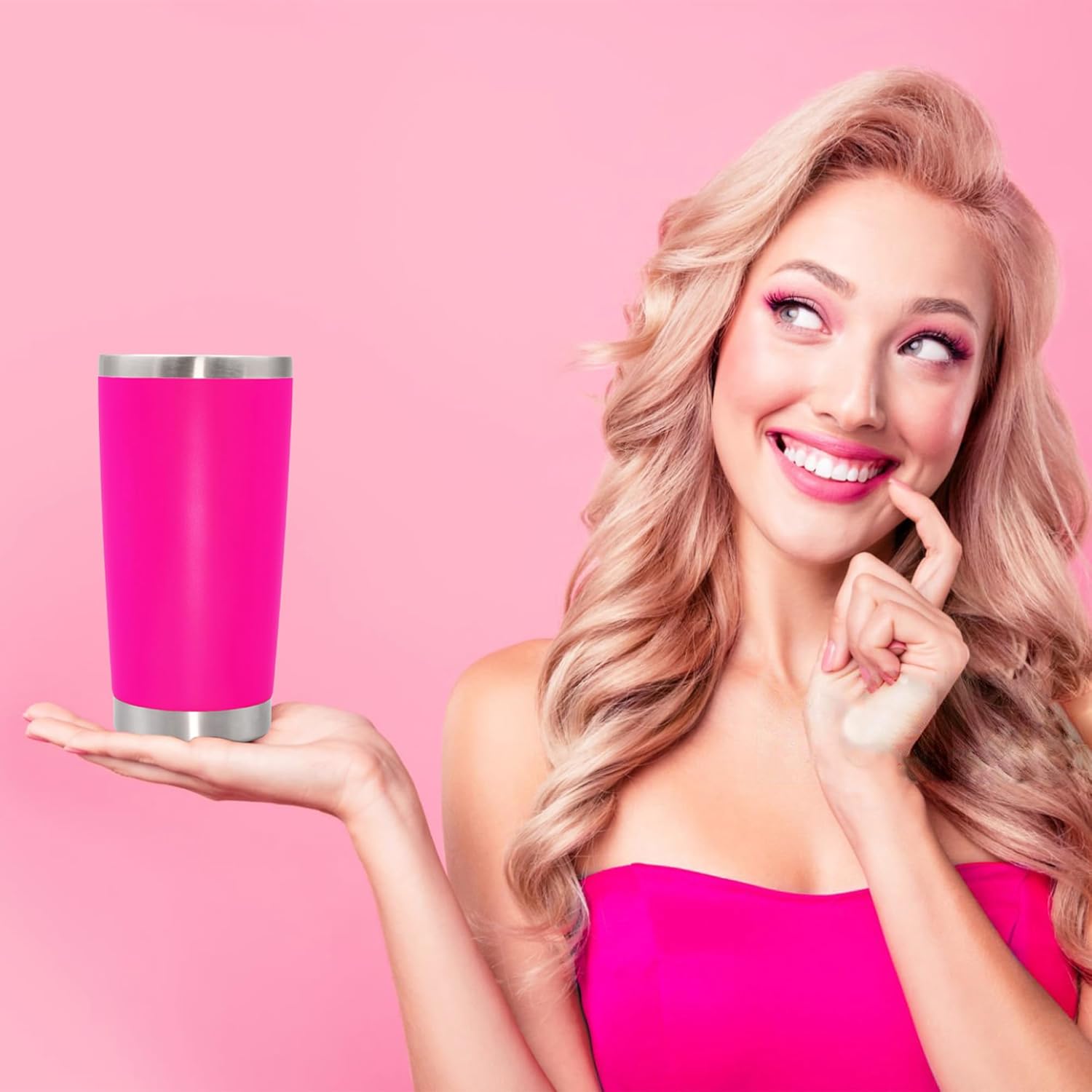 20 oz Tumbler Coffee Tavel Tumblers Bulk with Lid Stainless Steel Double Wall Vacuum Insulated Mug Powder Coated Cups fit Car Cupholder for Hot and Cold - Hot Pink, 4Pack
