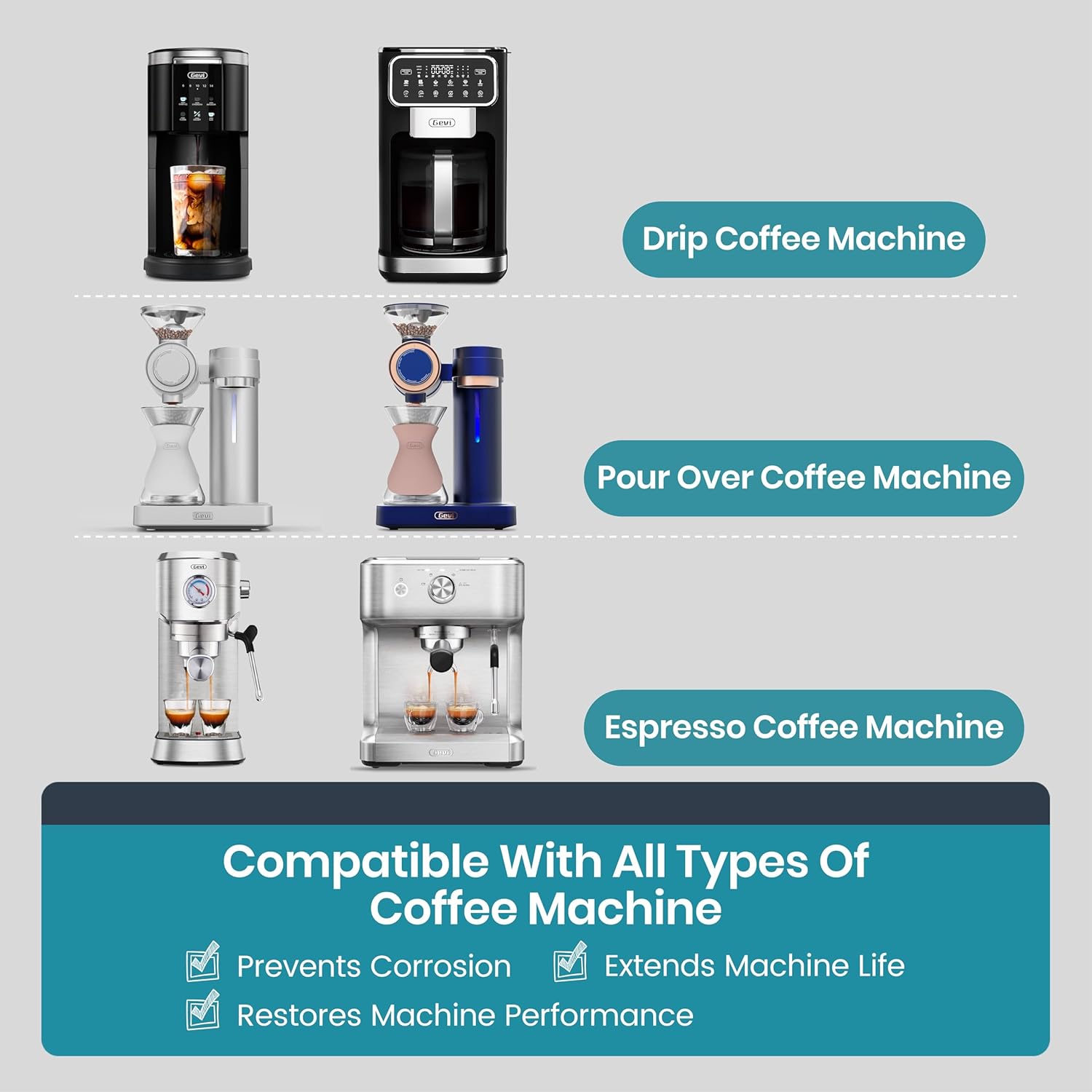 - ๐๐จ๐ฐ๐๐ซ๐๐ฎ๐ฅ ๐๐ง๐ ๐๐ง๐ข๐ฏ๐๐ซ๐ฌ๐๐ฅ๐ฅ๐ฒ ๐๐จ๐ฆ๐ฉ๐๐ญ๐ข๐๐ฅ๐๏ผGevi Machine Cleaner is specially designed for makers. Removing limescale and mineral buildup helps extend the lifespan of your espresso machine.