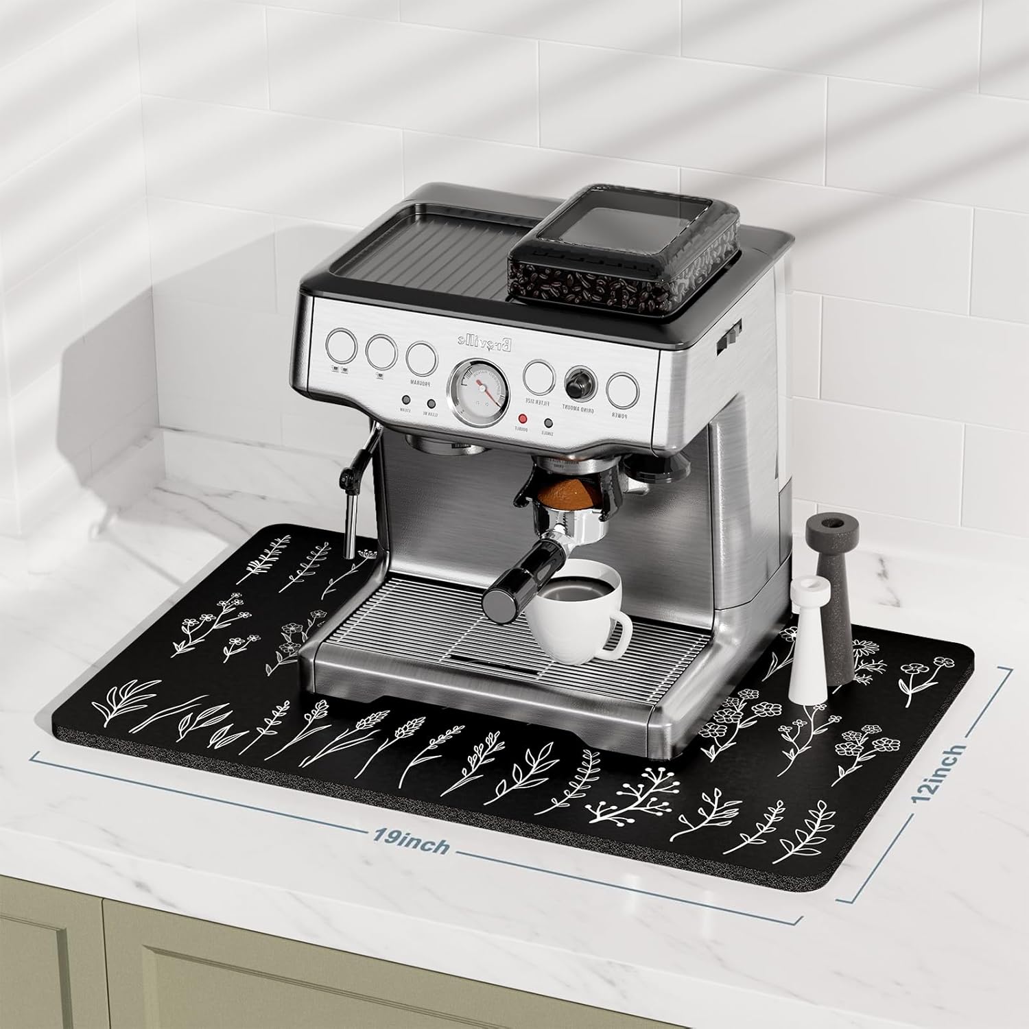 - Versatile Size: Coffee pad for espresso machine accessories measures 12" X 19" fits most counters. Thickened design 0.16 inch thick, which can also be used for any small home household appliances indoors