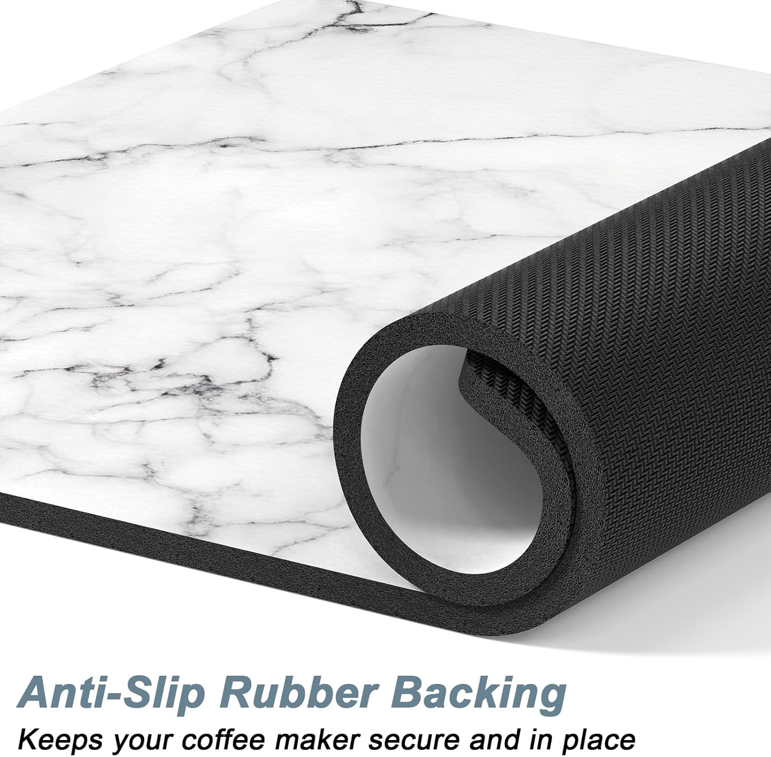 - Easy to Clean: The coffee bar mats for countertop can be cleaned with hand or machine to remove stains, up to 91% porosity material allows coffee bar mats to dry quickly without a machine