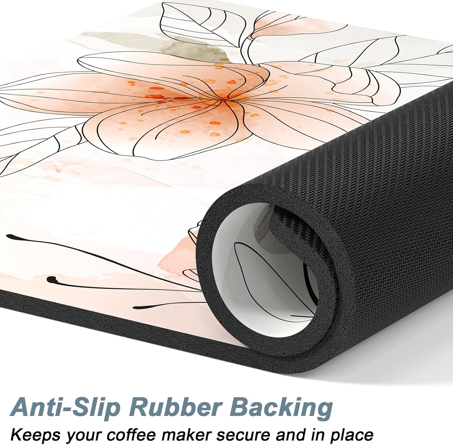 Rnivvi Coffee Mat, 12" x 19" Cute Coffee Bar Mats for Espresso Machine Station Accessories and Organizer, Hide Stain Rubber Backed Absorbent Dish Drying Pad for Kitchen Counter, Watercolor Flowers