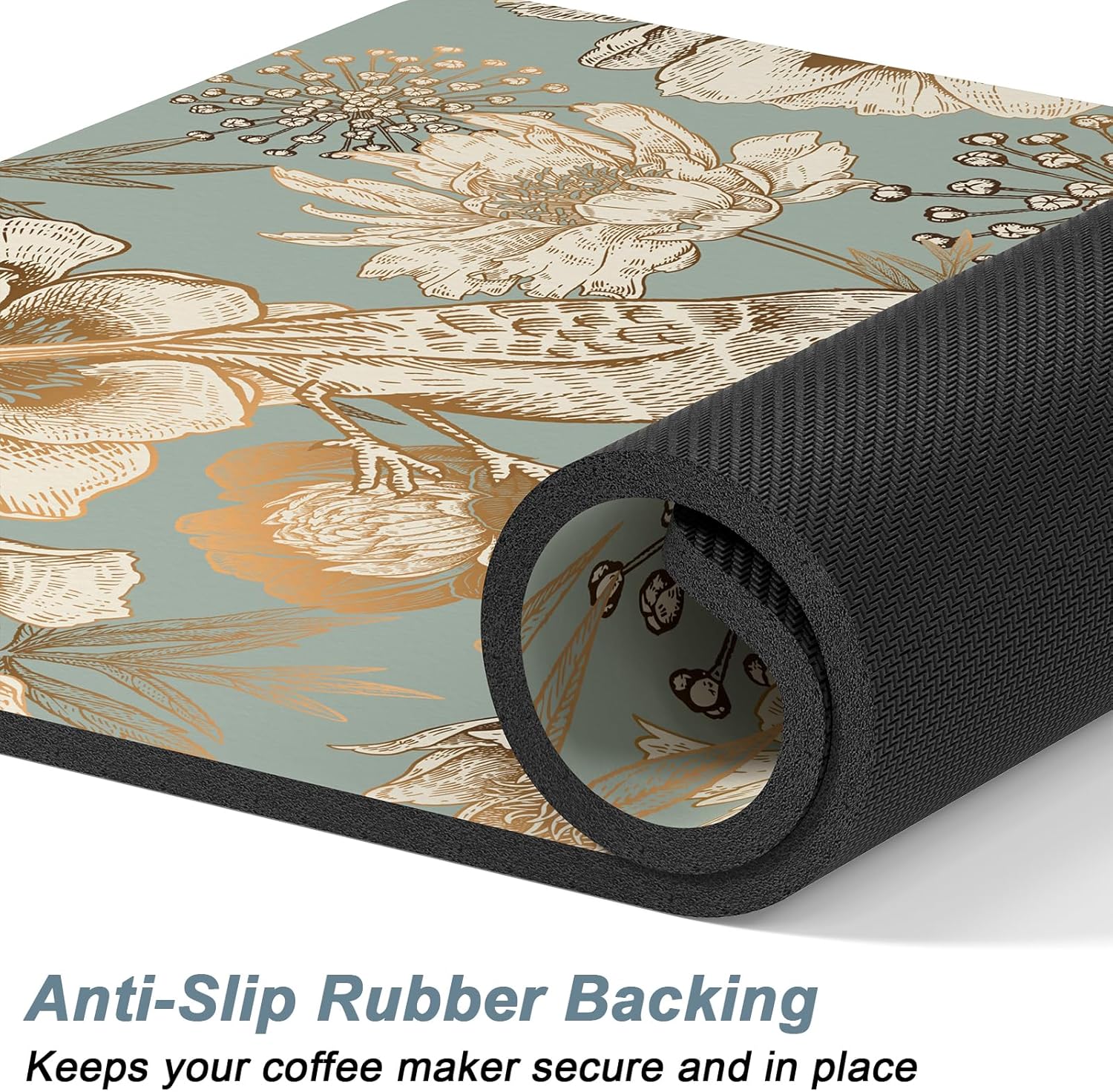 Rnivvi Coffee Mat, 12" x 19" Cute Coffee Bar Mats for Espresso Machine Station Accessories and Organizer, Hide Stain Rubber Backed Absorbent Dish Drying Pad for Kitchen Counter, Retro Flower