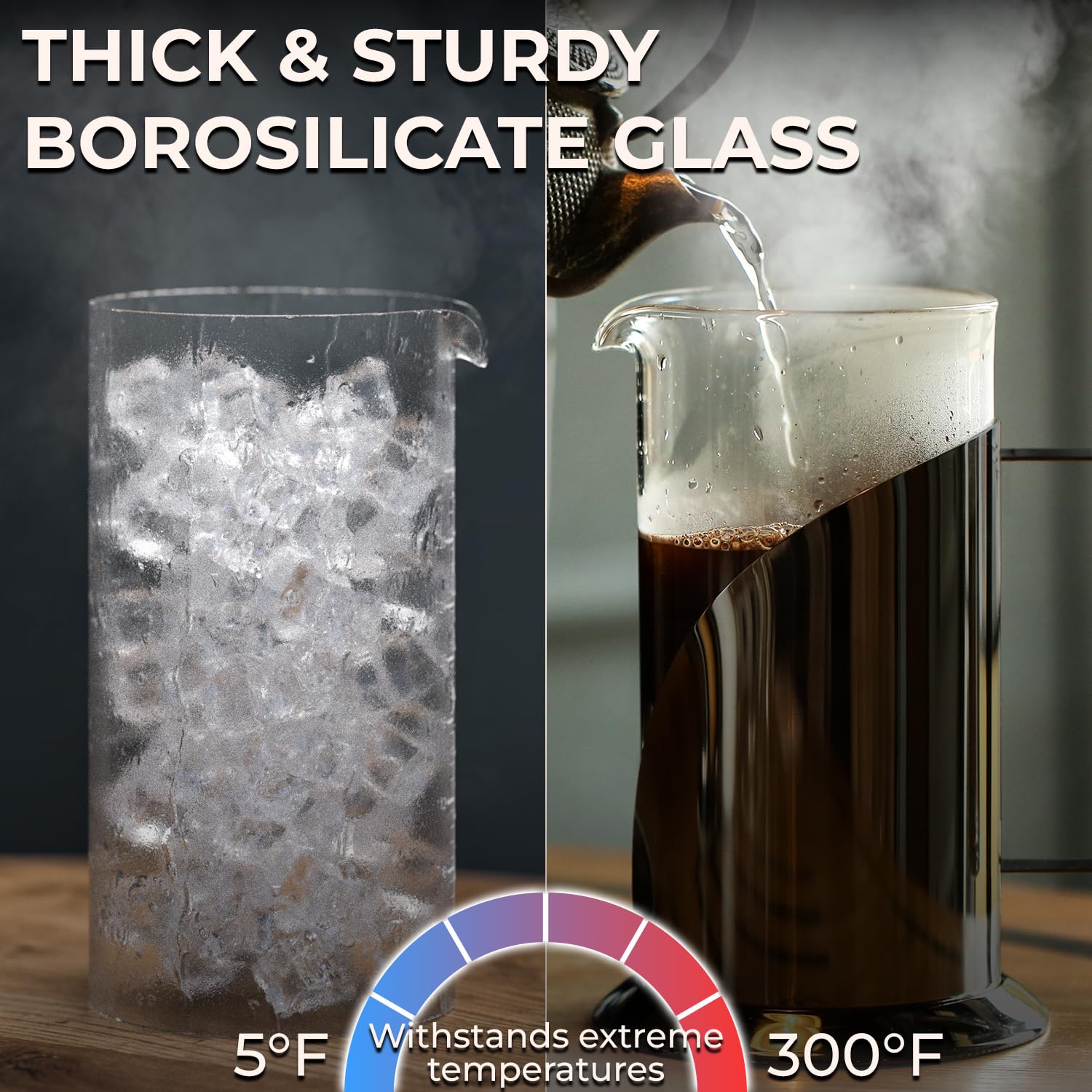 Cafe Du Chateau Stainless Steel French Press Coffee Maker - 34oz Insulated Coffee Press with 4-Level Filtration, BPA Free, Durable Glass, Great for Tea
