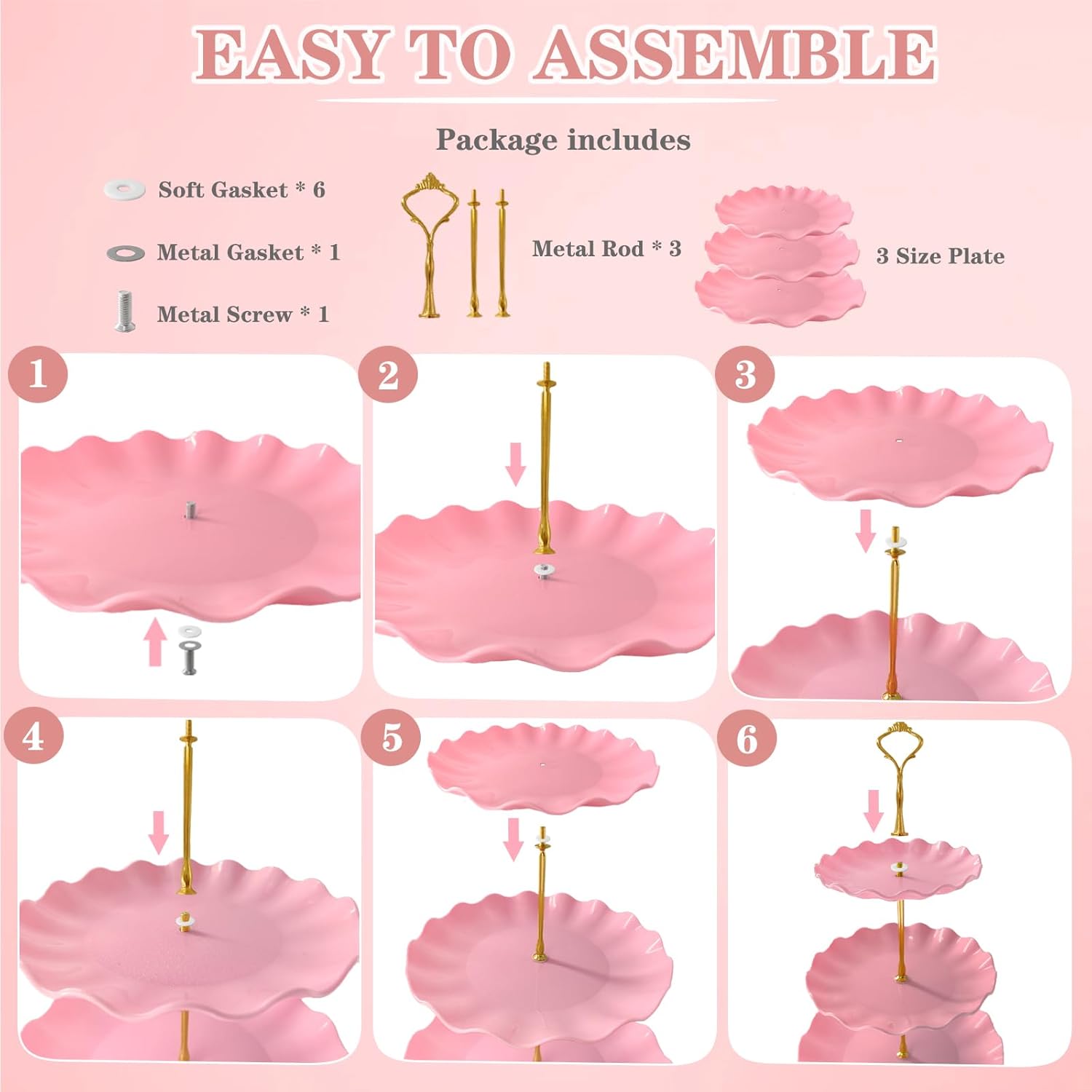- Elegant Party Decorations: This tiered tray dessert stands set is elegantly designed using texture-filled metal rods with pink trays. It is a reliable helper for various events and parties such as tea party, baby shower, birthday party, wedding, graduation, etc. and a beautiful decoration for dessert table or appetizer table.