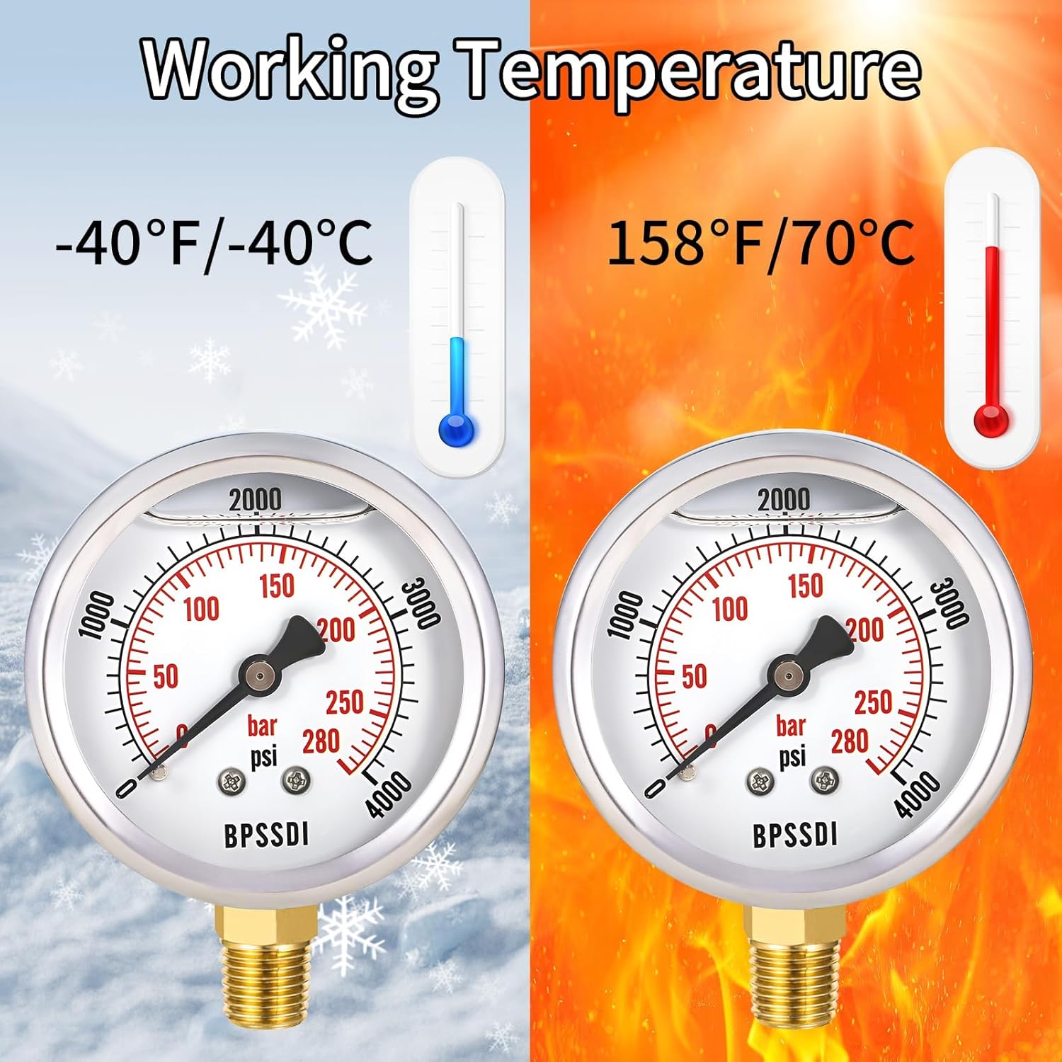 - Weather and Temperature Resistant - The pressure gauge can be used in environments from -40°C to 70°C in a variety of climates.