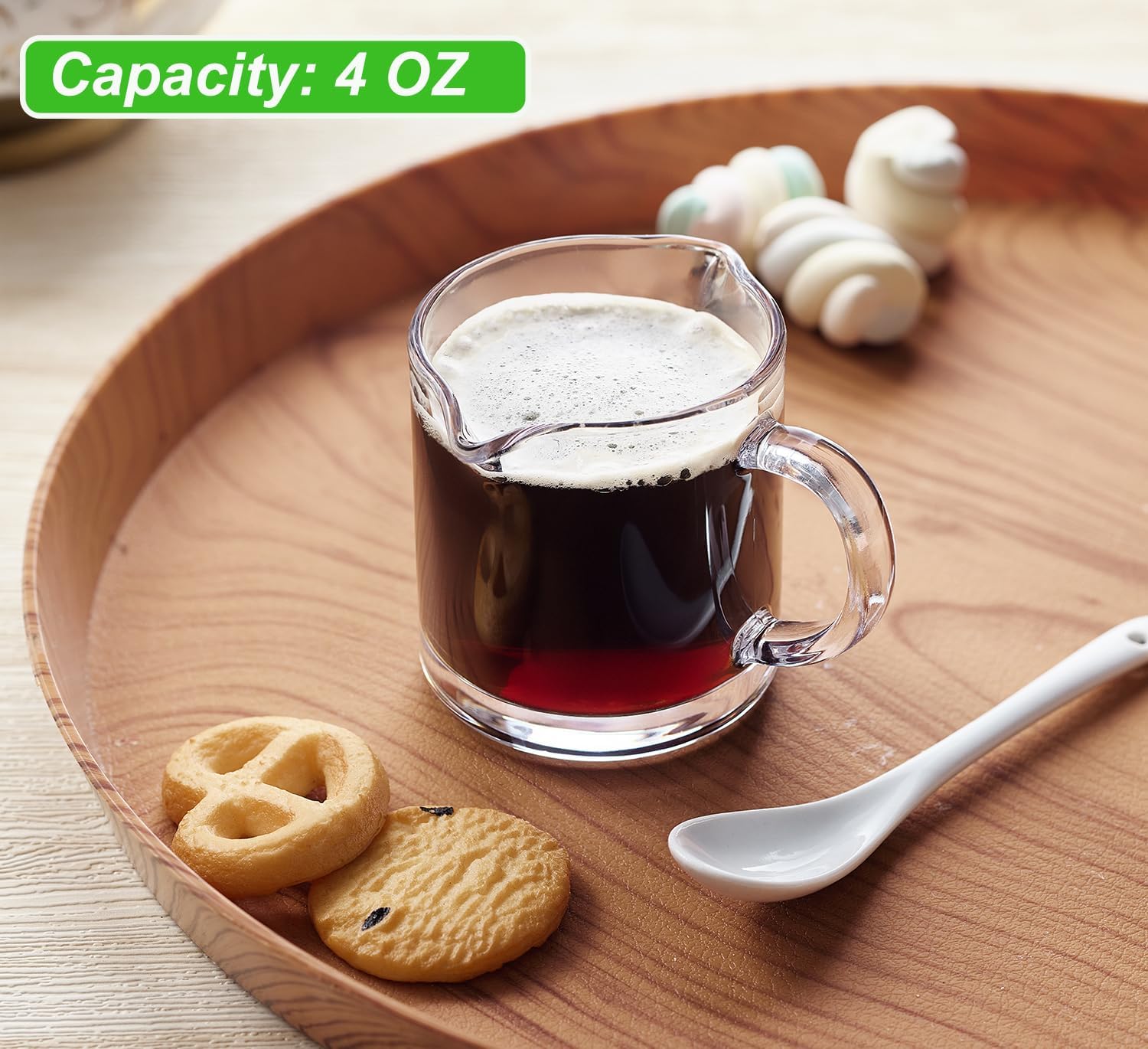 Ackers Espresso Cups Single, 4 OZ Double Spouts Cups, Milk Cup with Handle, Clear Glass
