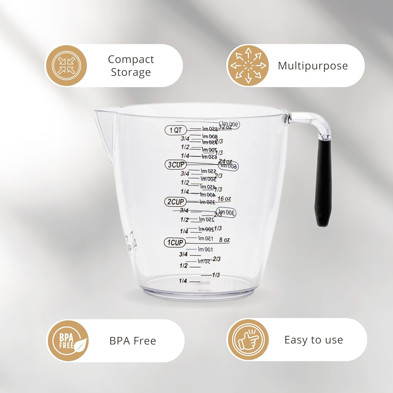 Measuring Cup Set - Clear Plastic Measuring Cups for Liquids Batter Flour Powder - Measuring Cups with Handle & Spout (8/16/32) oz