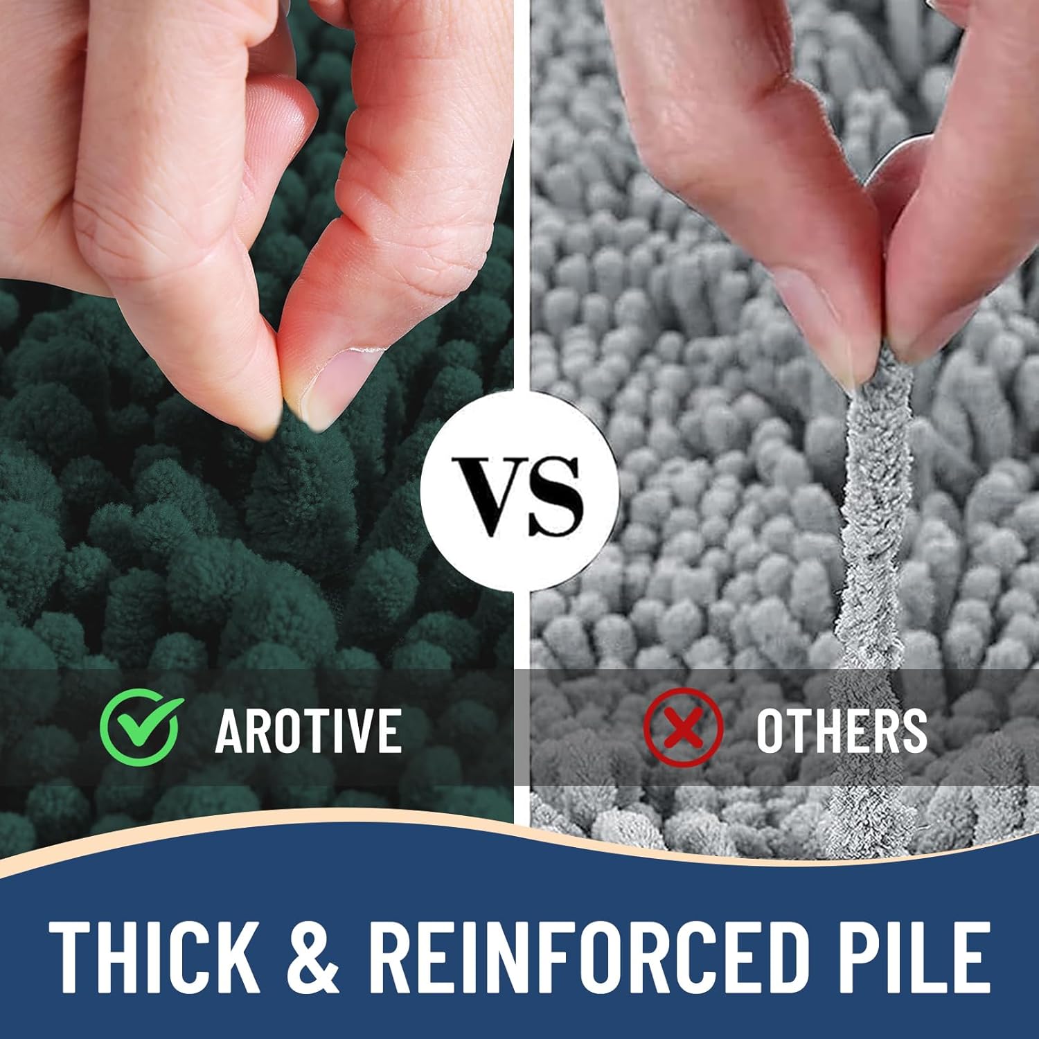 Arotive Luxury Chenille Bathroom Rug Mat, Extra Soft Thick Absorbent Shaggy Bath Rugs, Non-Slip Machine Wash Dry, Plush Bath Mats for Bathroom, Shower and Tub, 40x32, Dark Green